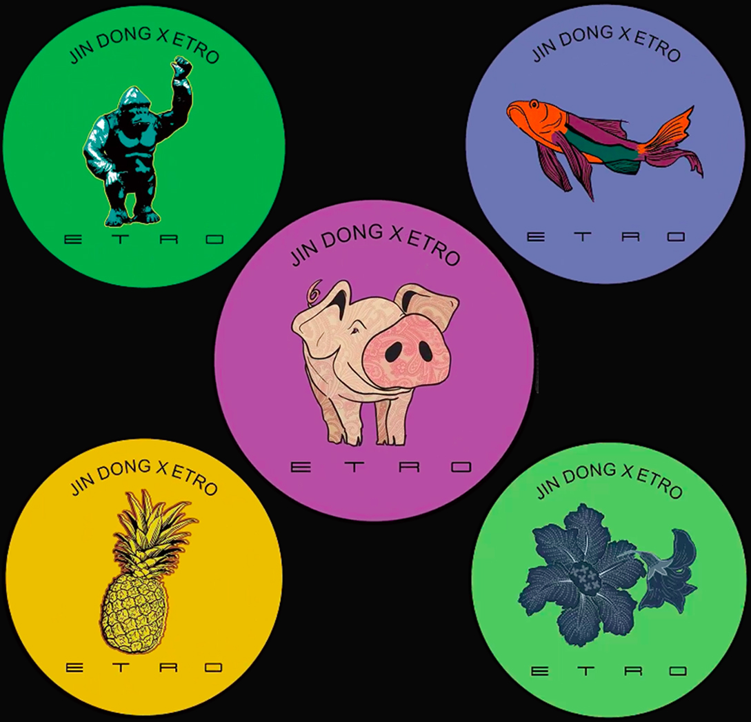 此次的整个IN DONG X ETRO特选别注系列的图案早在今年9月就由亲赴米兰的靳东与Kean Etro先生在ETRO设计工坊共同发想创制而出,并从几百张花纹背景的图案中为靳东特别定制甄选,并结合靳东的建议进行了全新的表达,与趣智图案相得益彰。