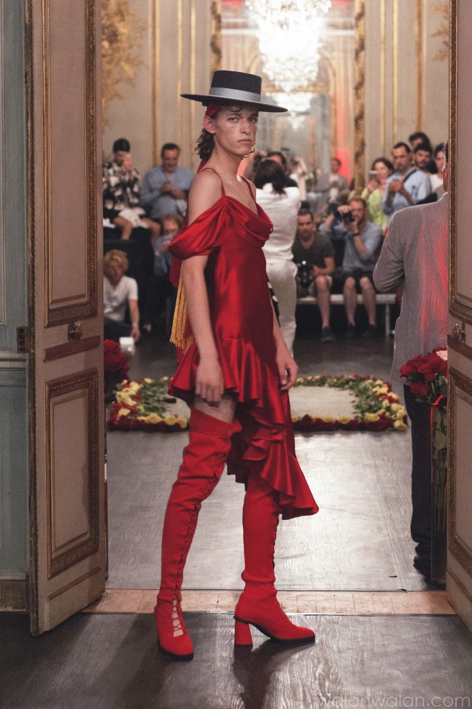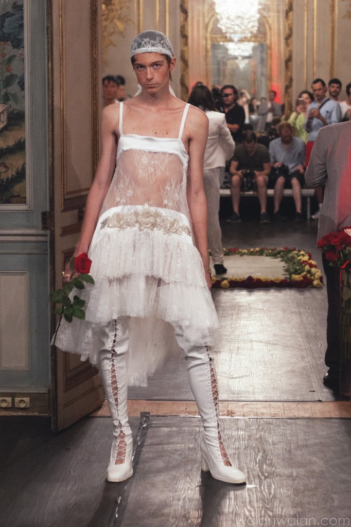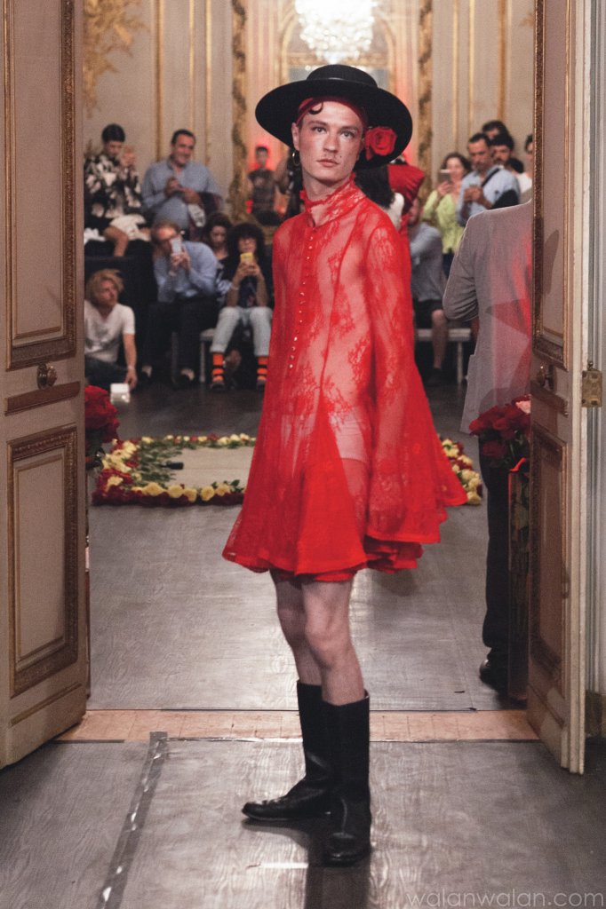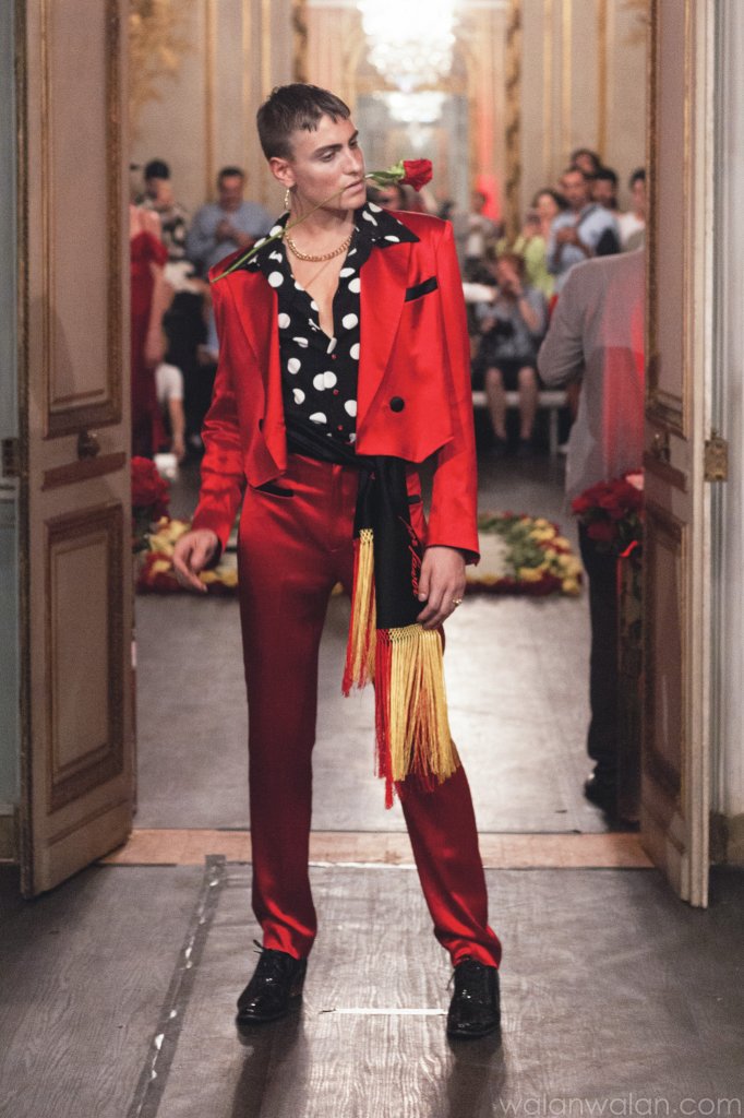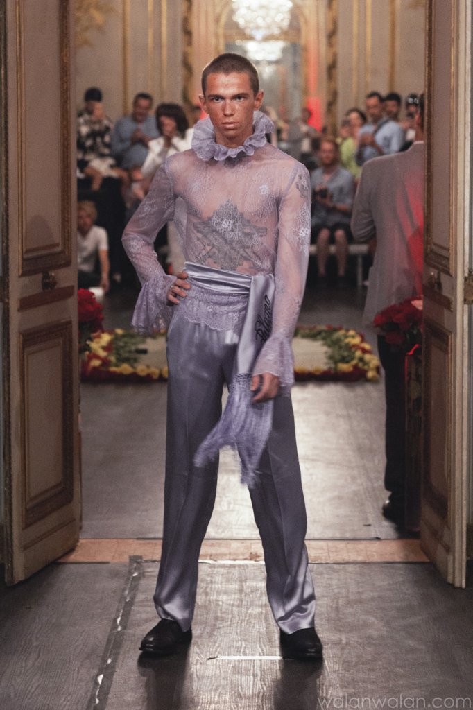 Palomo Spain 继续选用男模演绎极具女性化的服装,“雌雄同体”,似乎也是在抛弃传统的男性审美,阳刚、霸气等古板的印象。