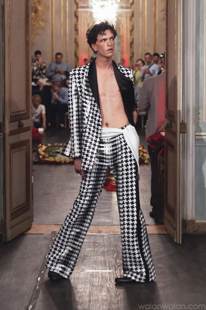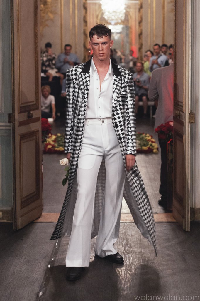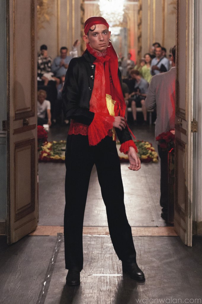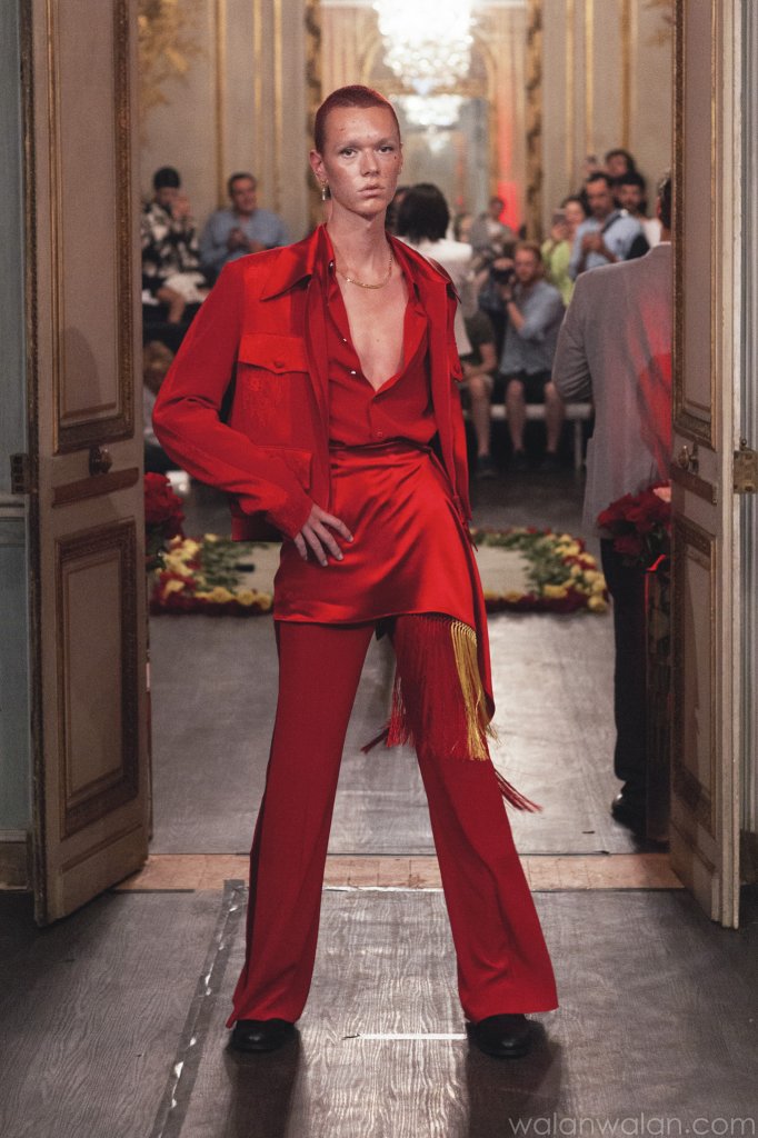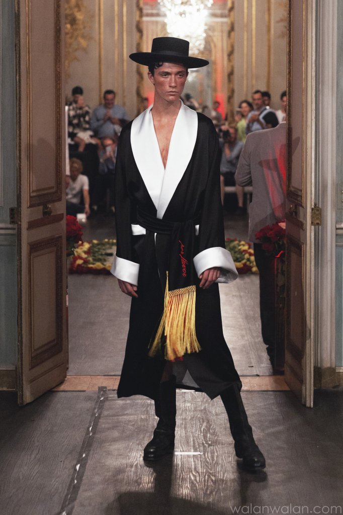 Palomo Spain 继续选用男模演绎极具女性化的服装,“雌雄同体”,似乎也是在抛弃传统的男性审美,阳刚、霸气等古板的印象。