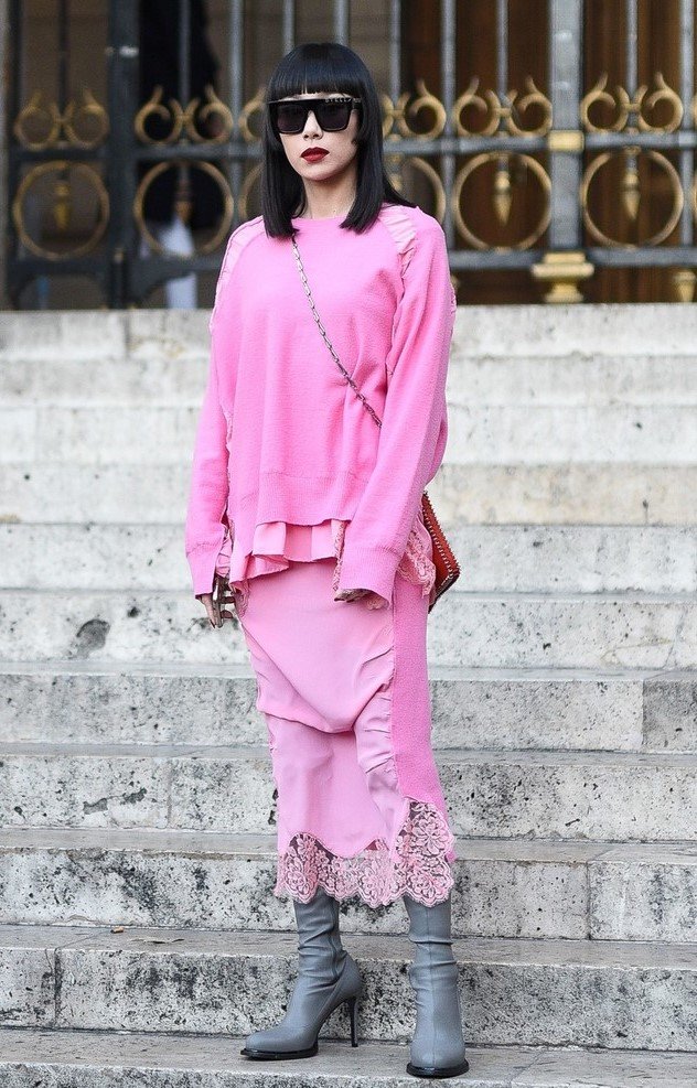 一身考究的粉色系搭配总是能快速吸睛:甜蜜软糯的亮粉色活泼可爱,让人元气满满、少女心爆棚;饱和度稍低一点的裸粉色甜美可人,充满温柔恬静的气质。