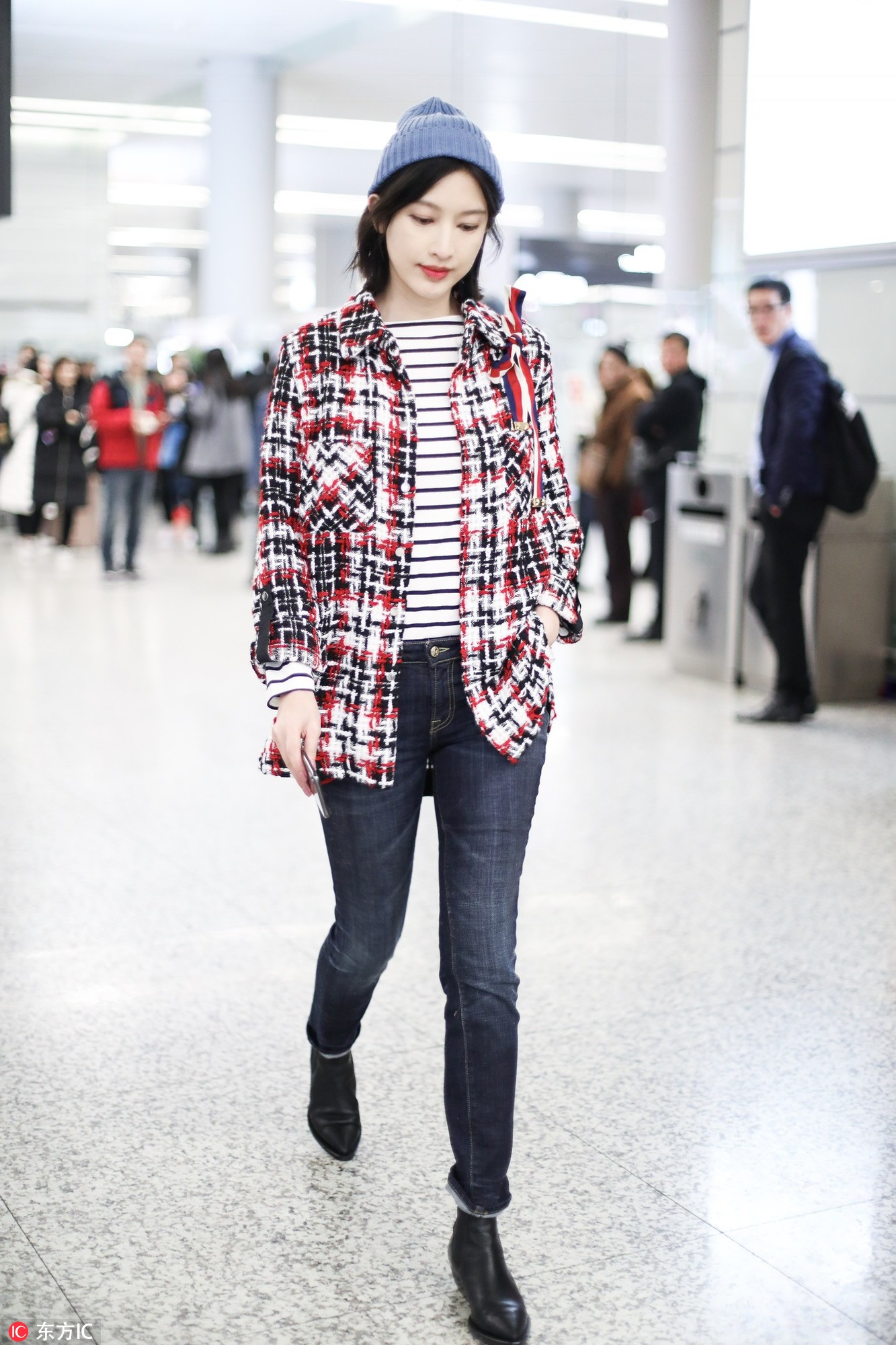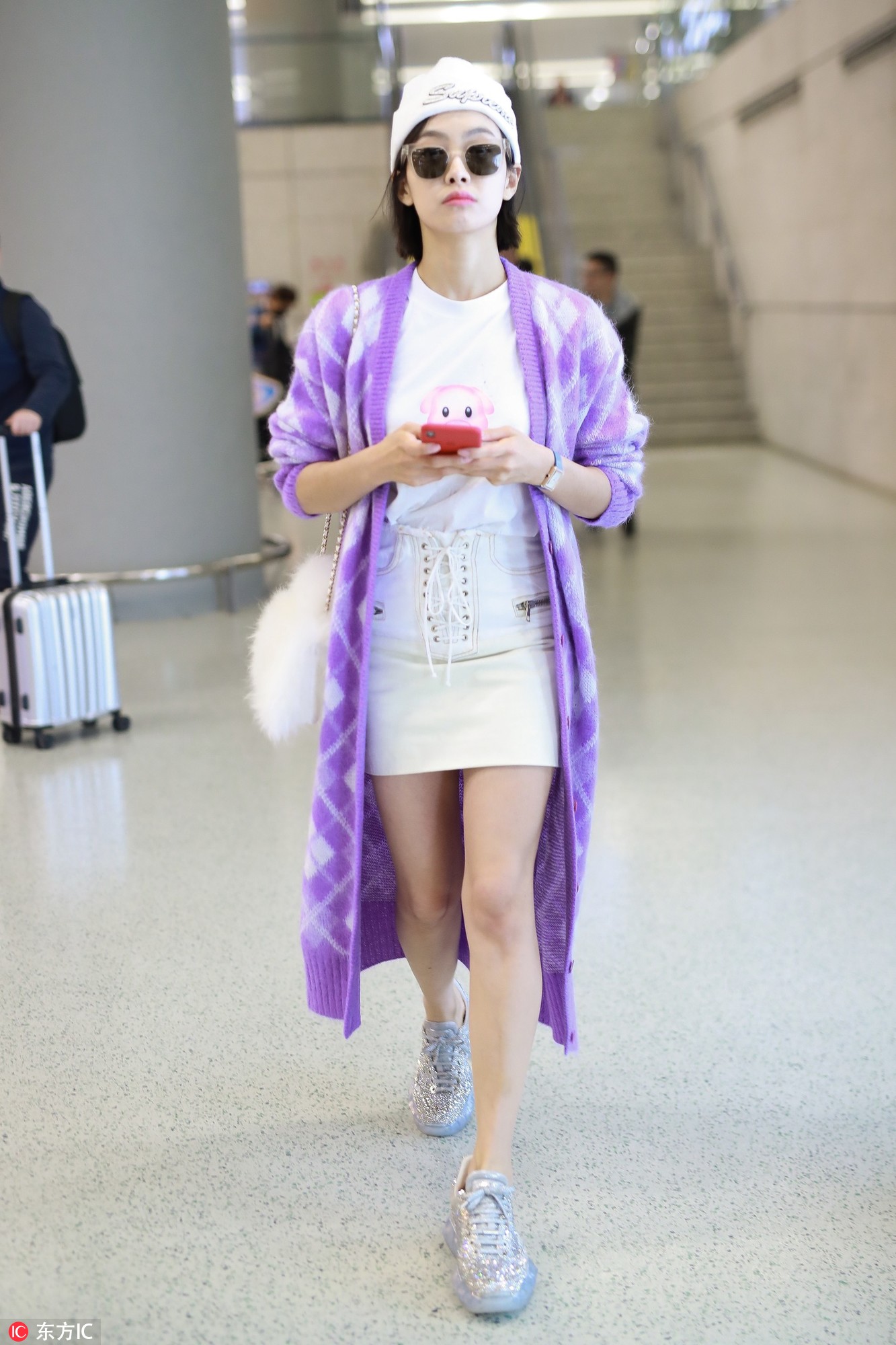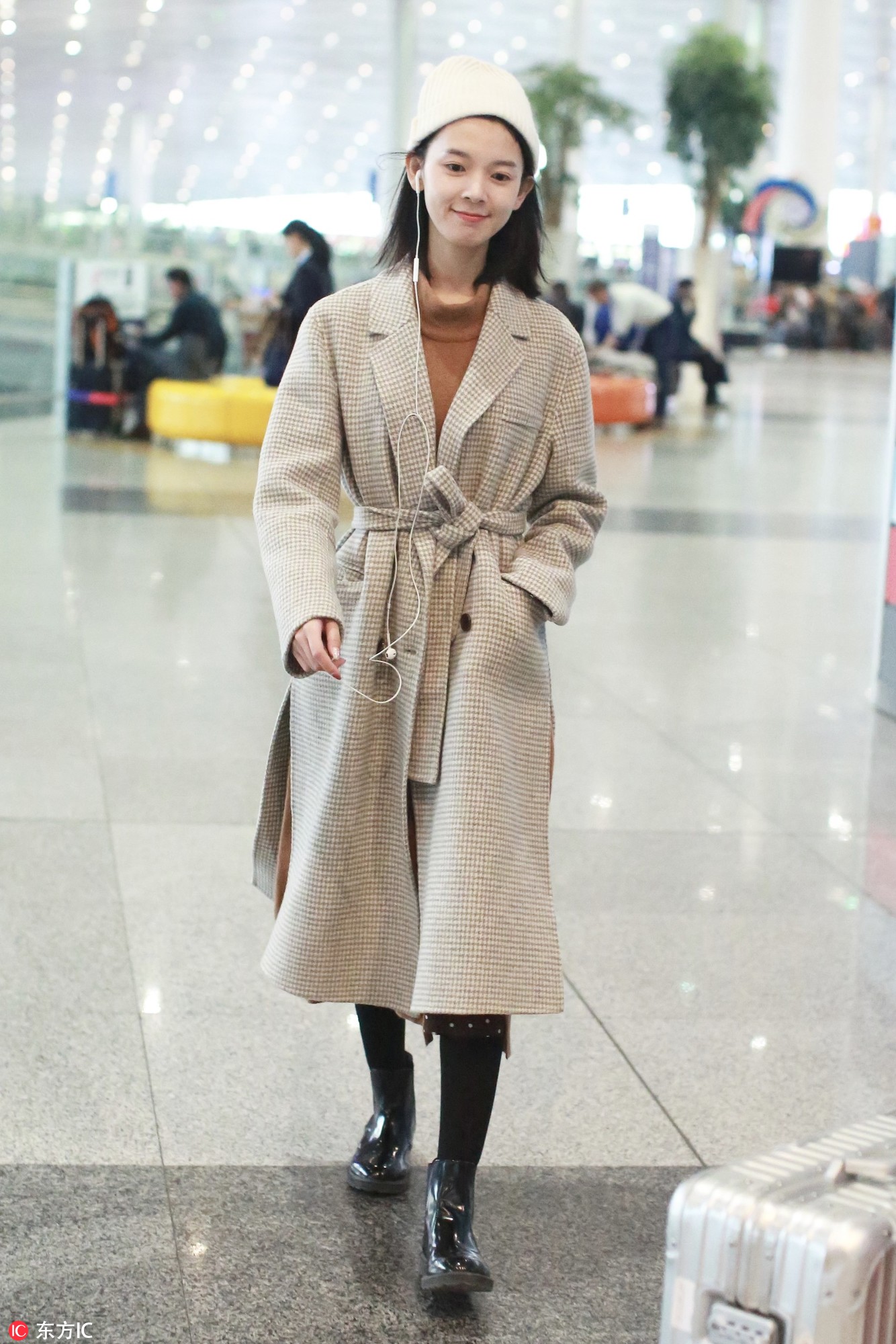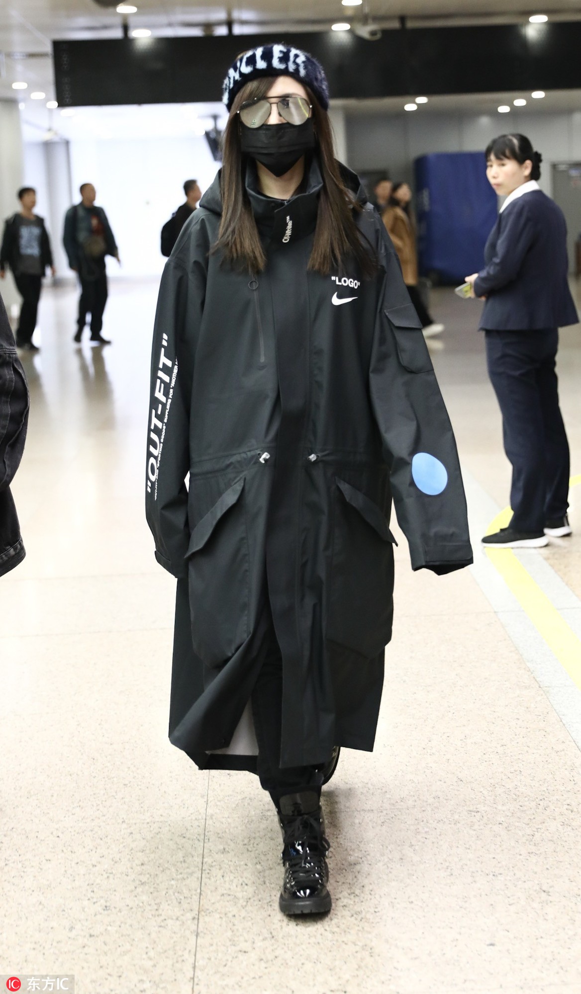 关晓彤现身首都机场,她头戴Vetements黑色棒球帽。