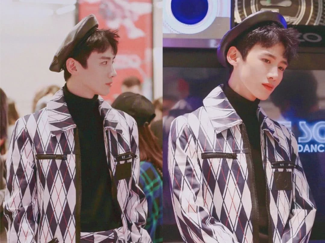 大部分男星戴贝雷帽还是会像白敬亭这样留出一些刘海作为中分状,这种带法需要先把发型抓好,然后把帽子轻轻扣在后脑勺。
