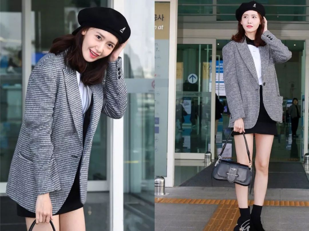 这种略微韩系的带檐贝雷帽就需要更加可爱清新的带法了,颜色可以选择崔雪莉这种大地色系更加百搭,然后佩戴的时候戴在头顶处,把刘海露出来,能很好增加甜美度跟时尚度。
