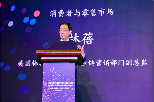 美国棉花公司亚洲供应链营销部门副总监林蓓在《消费者与零售市场》的演讲中介绍了美棉牵手澳洲棉业的Cotton LEADS项目,深入阐述了棉花可持续的天然特性以及棉制品后整理技术的创新与应用。他介绍道,旨在推广负责任的棉花生产的Cotton LEADS项目,持续向上下游生产商和制造商以及品牌商和零售商传递环保理念,截至目前合作伙伴已达到556家。为此,美国棉花公司制定了一个十年可持续性的发展目标,以此来推动可持续的生活方式和绿色环保的理念。自2014年起,Cotton Republic(棉花共和国)与美国棉花公司合作推出包括内裤、家居服、卫衣、袜品在内的数十款棉制品,累计使用美国棉花公司提供的全棉标识吊牌等超过40万个。通过这种与中国纺织领域的合作,提供多种资源及研究成果来帮助产业链合作伙伴开发并推广优质、创新且具有盈利性的棉制品。