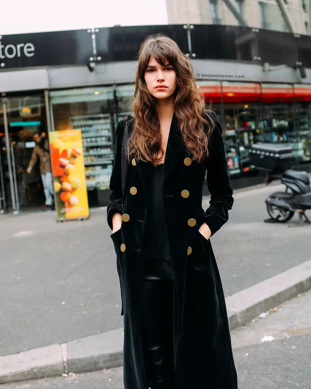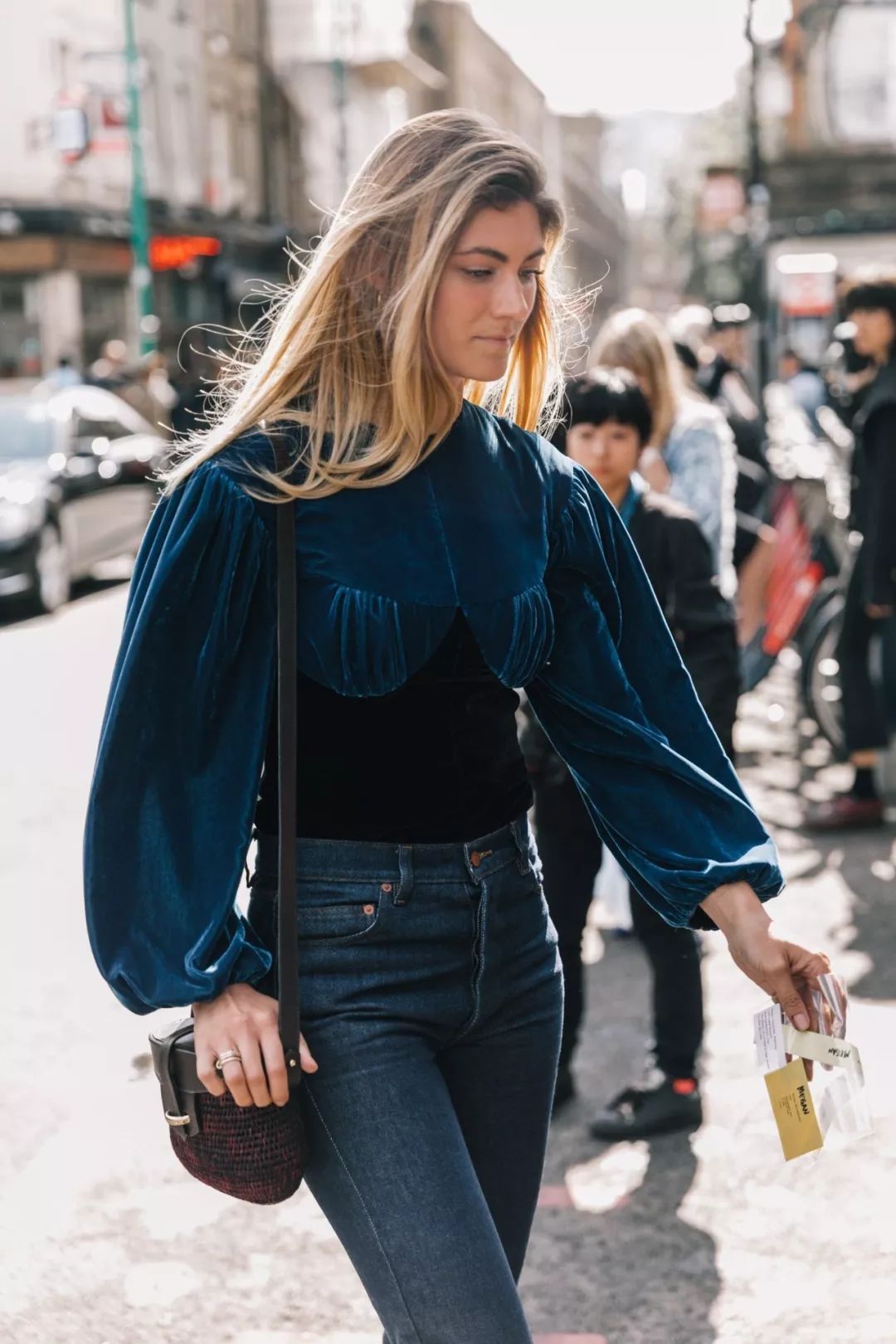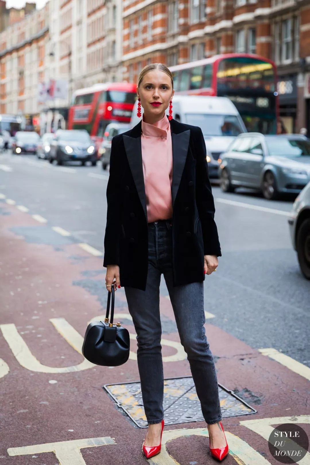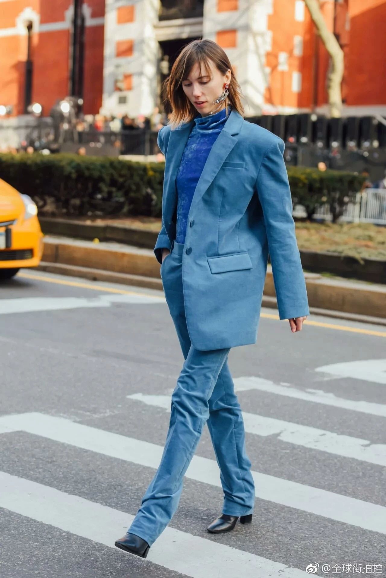 潮人街拍中出镜率很高的丝绒套装,在日常穿搭其实还是有一定难度的。一般身上只需有一件作为造型的亮点进行突出就够。