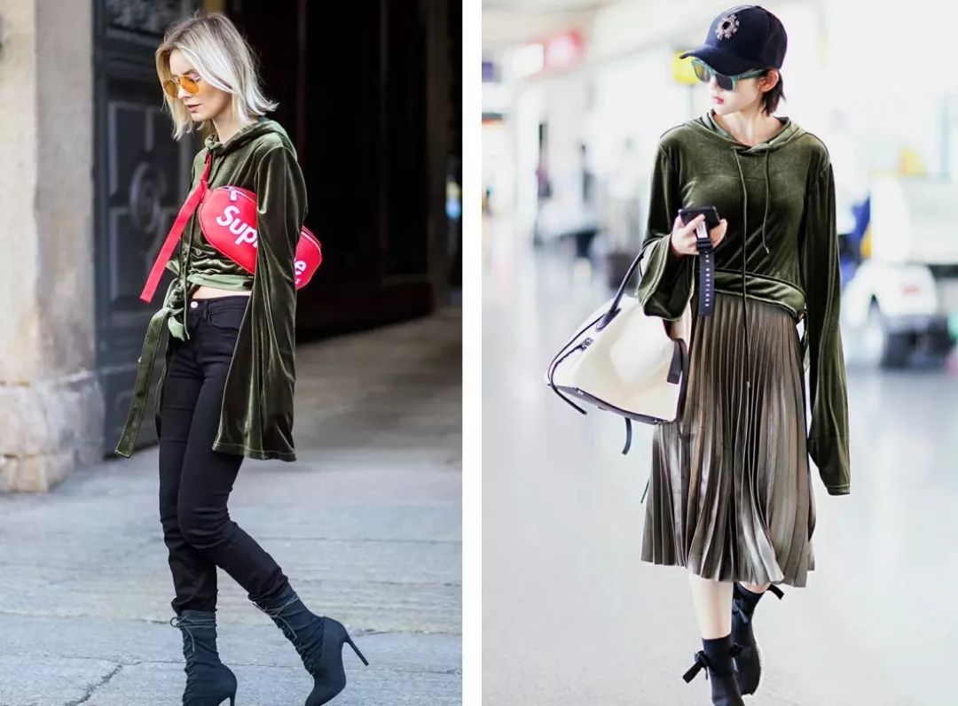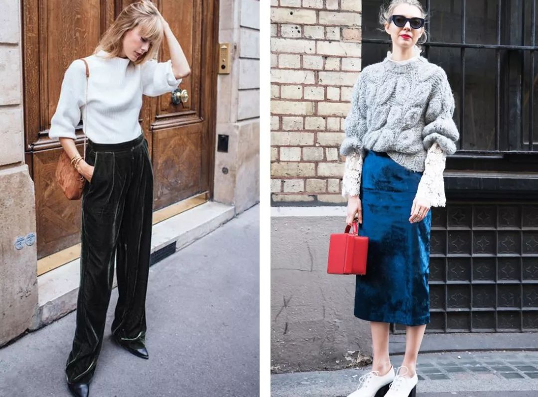 而丝绒下装,则最适合混搭卫衣、夹克等街头风格的外套上衣,时髦指数更翻倍。