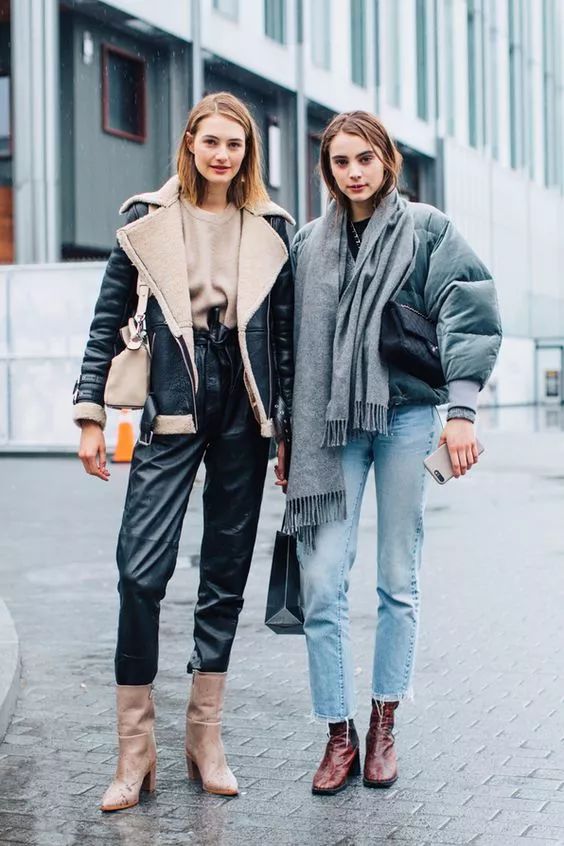 冬季最常见的要属丝绒外套+牛仔裤的混搭套路,酷帅有型潮范十足。