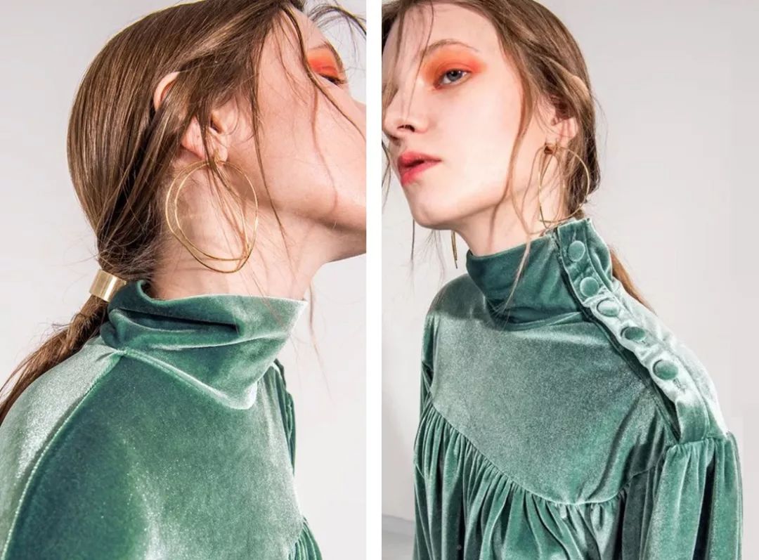 丝绒面料在视觉上容易产生膨胀感,因此最好让丝绒元素远离我们身上比较肥胖的部位。