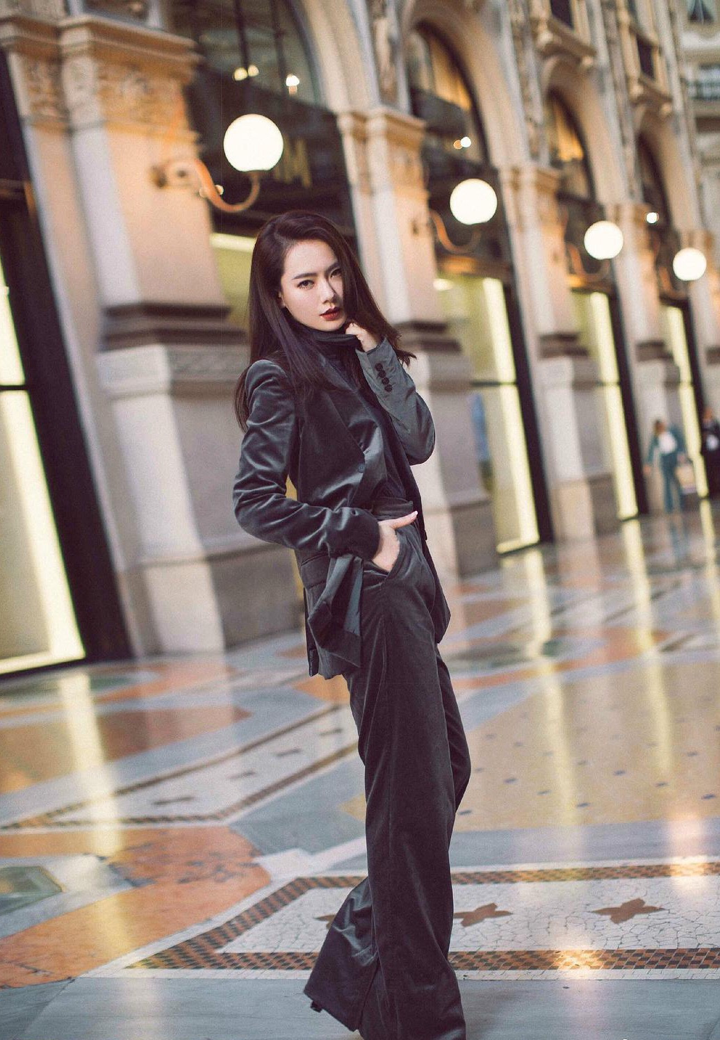 丝绒单品特别适合运用在同色系搭配上,大气显贵的同时,亦能通过材质的碰撞让你的造型层次感鲜明,一点儿都不单调。