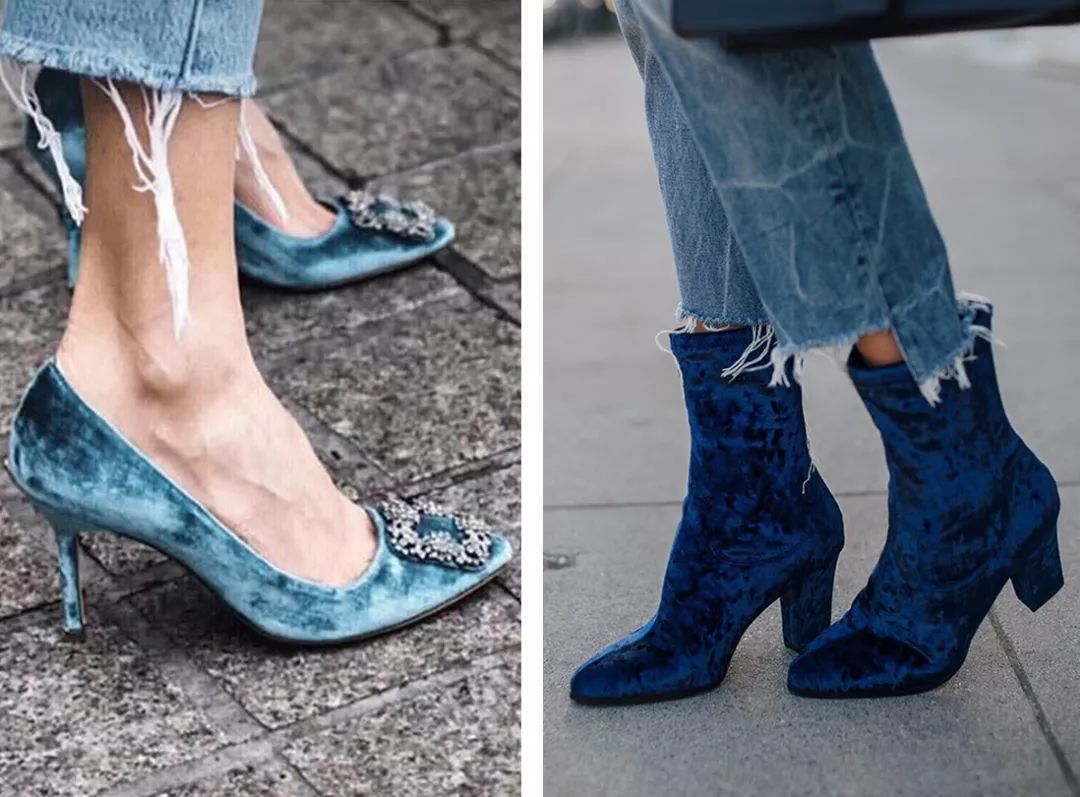 和今年大热的动物纹一个道理,想要追赶潮流但又怕自己不能完全hold住的小可爱们,完全可以从配饰来做文章。最值得投资的要属丝绒质地的鞋包,小面积的点睛,大写的高贵!
