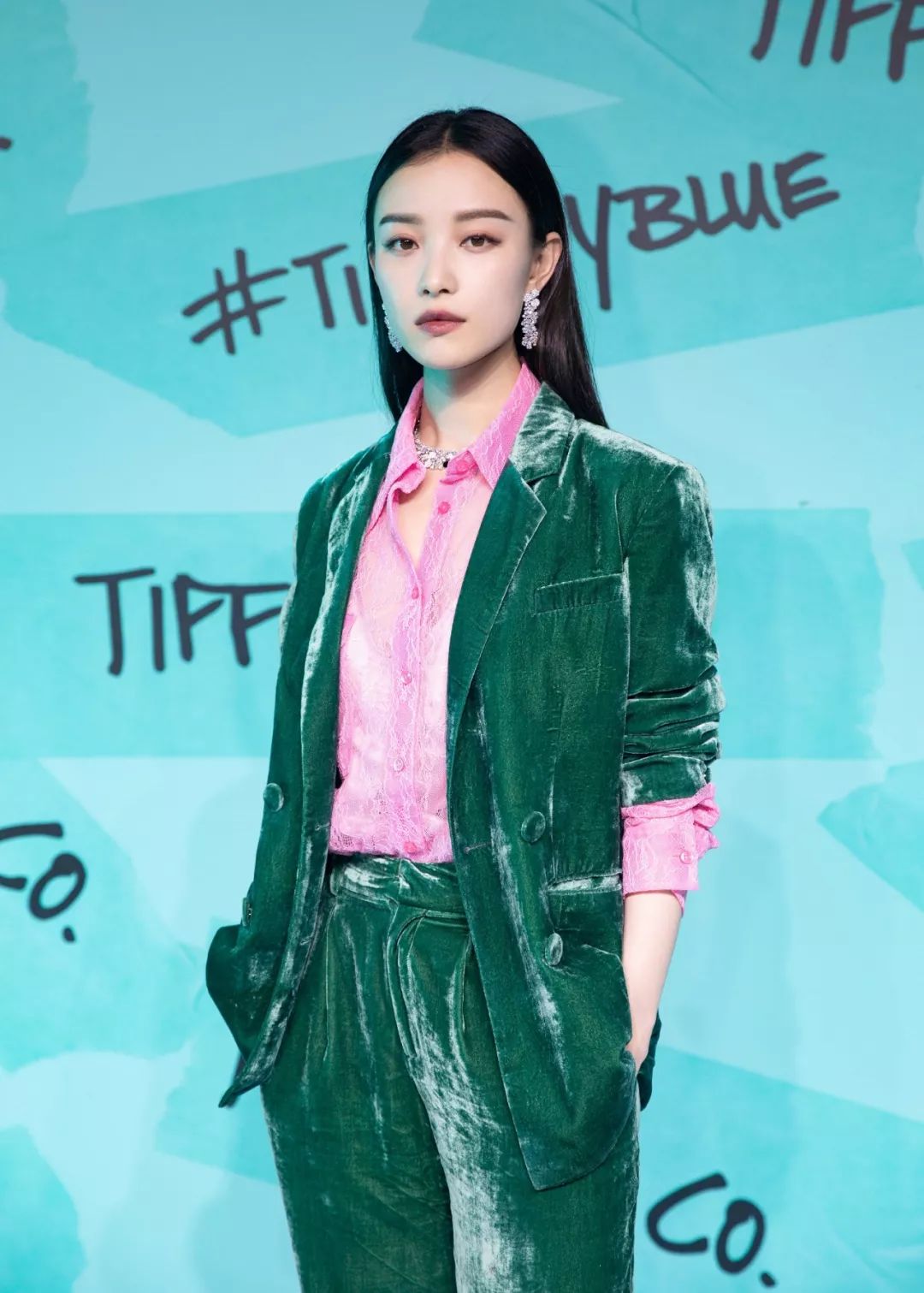 戚薇的深色丝绒西装显得人纤细不少,加上她本身也很有“攻气”,很适合西装,被网友大赞好看。