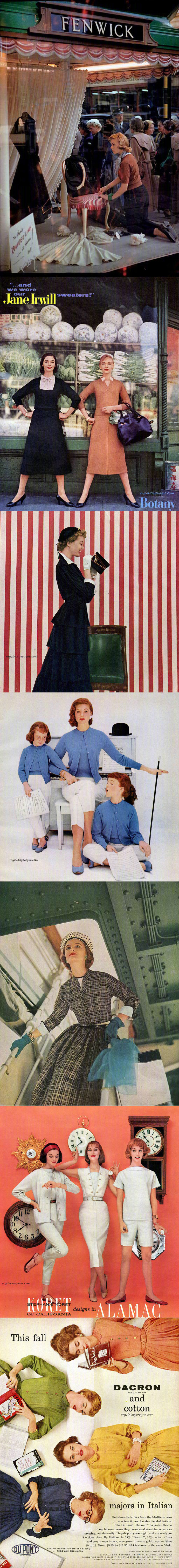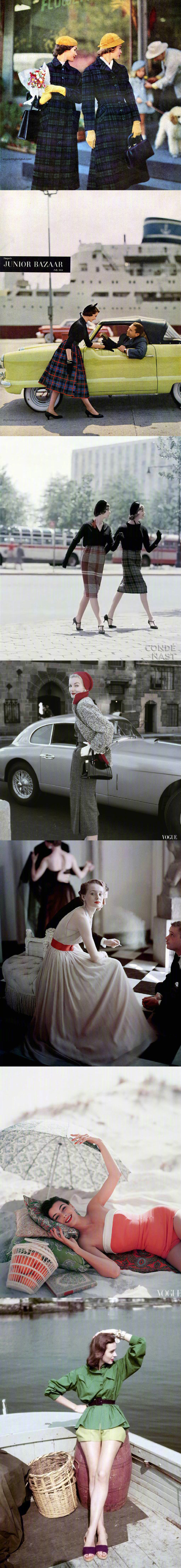 在那个一丝不苟的优雅年代,我们能看到的流行元素,至今还在时尚圈大行其道,剪裁合身的小黑裙,格纹元素,阔摆连衣裙、各式的印花连衣裙、泳装。