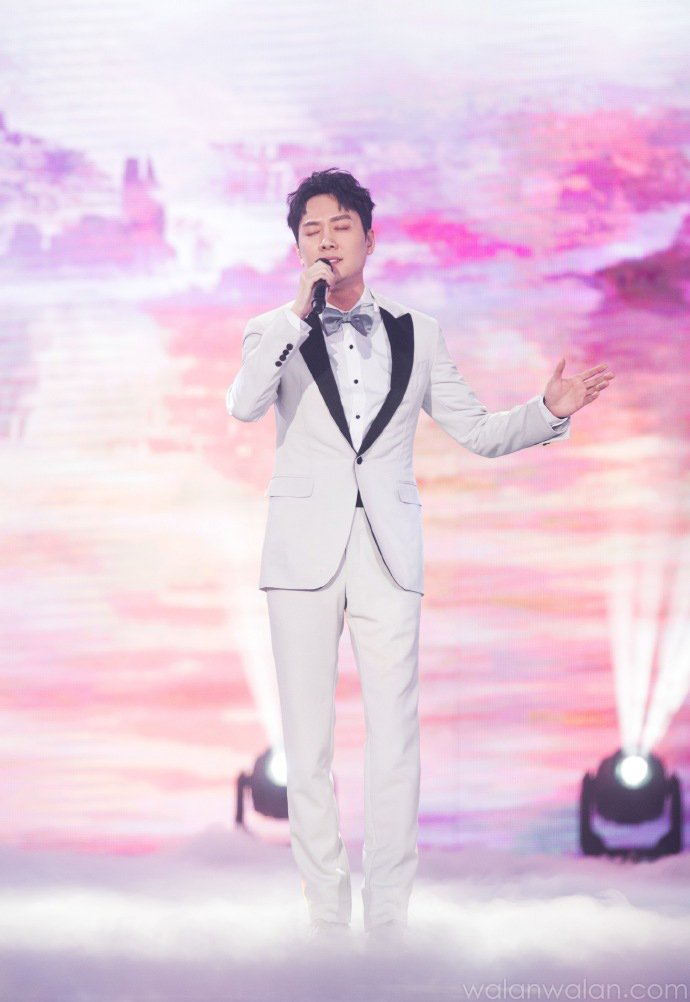 王凯亮相2019东方卫视跨年盛典,象牙白色麻质礼服,配上真丝双宫绸翻领设计,优雅别致。
