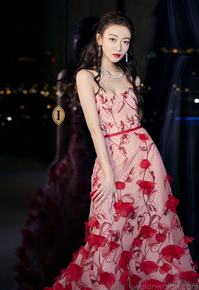 吴谨言身穿Marchesa Notte长裙佩戴Boucheron宝诗龙珠宝亮相,仙气飘飘