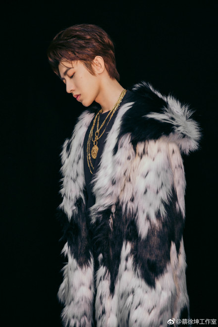 蔡徐坤跨年演唱会造型,黑白定制环保皮草大衣,搭配Givenchy紀梵希配饰,帅气又温暖