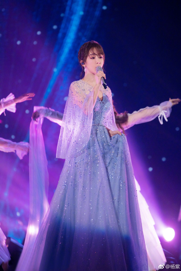 杨紫身穿一袭仙气十足的淡蓝色纱裙亮相,白色花朵刺绣精致美丽,双臂的透明轻纱更显优雅,镶钻耳环更是恰到好处地彰显闪耀的动人魅力