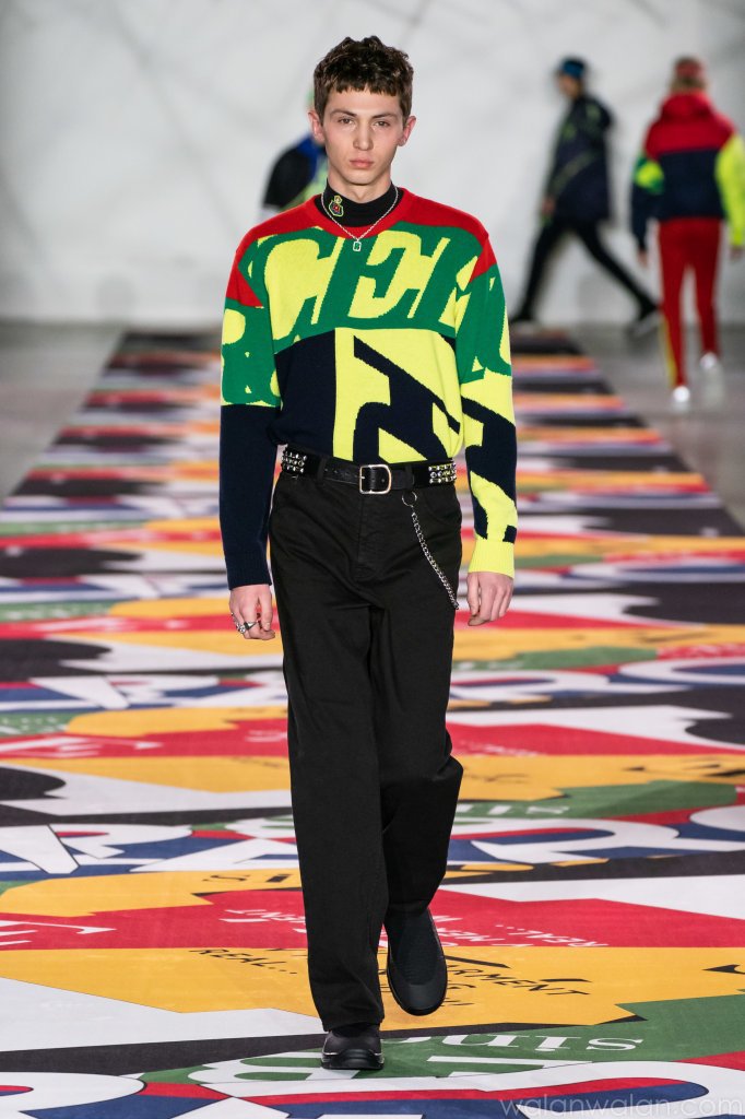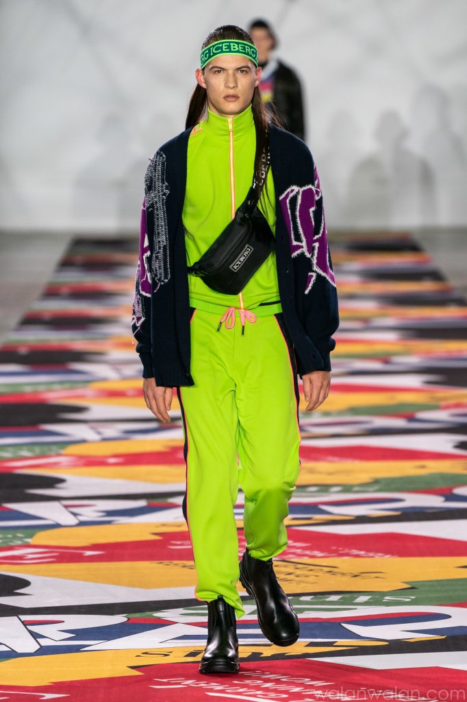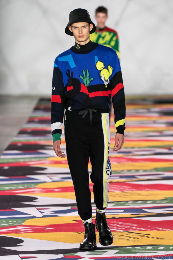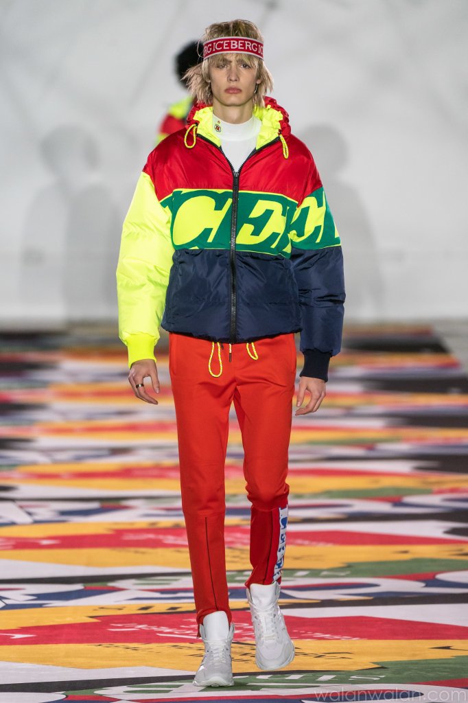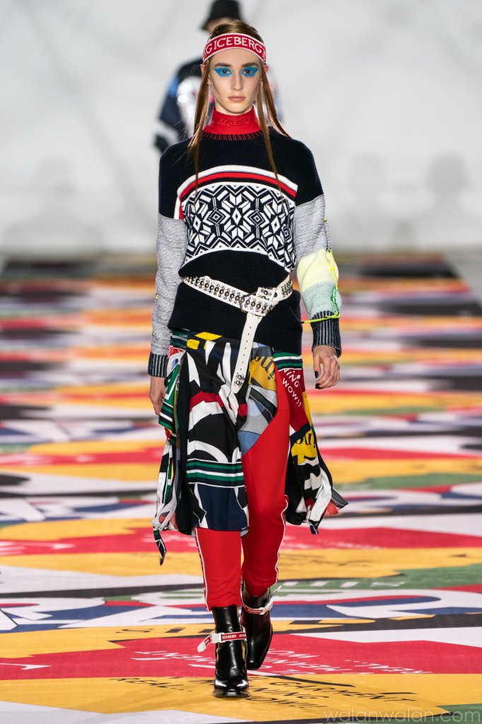 极强的色彩对比度,不管是在颜色的选择还是色块的分布上都极赋休闲运动感,八十年代的针织品加上迪斯尼经典卡通人物“米老鼠”加持,更是充满复古趣味性,英式美学基调结合在一起,赋予Iceberg更加丰富的外在和内涵。