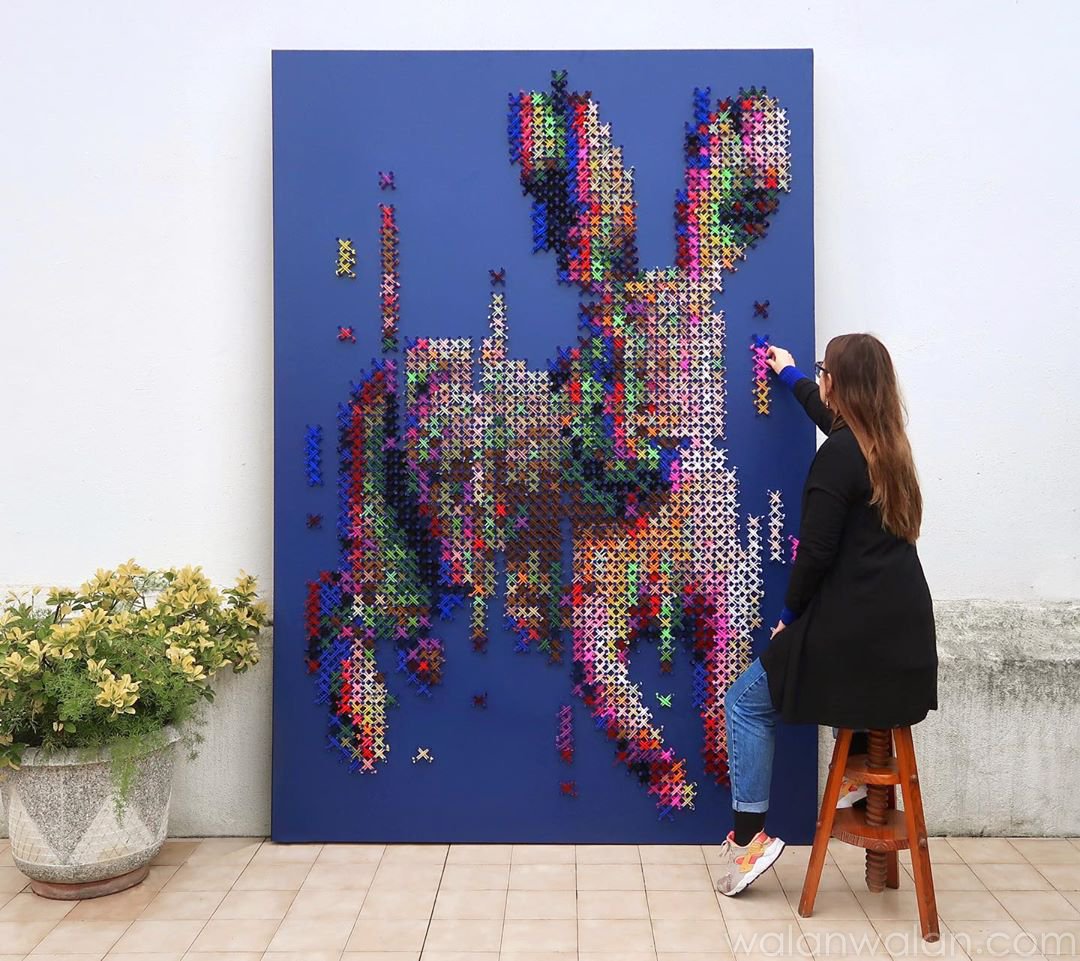 Ana Martins在ins上名为Aheneah,是位精通刺绣和图形学的葡萄牙艺术家。获得了平面设计学位后,她在纺织品中发现了新世界,决定将其祖母传授的刺绣技艺加以改造,将传统技术转化为现代图形学作品,让传统文化和新时代发生联系。