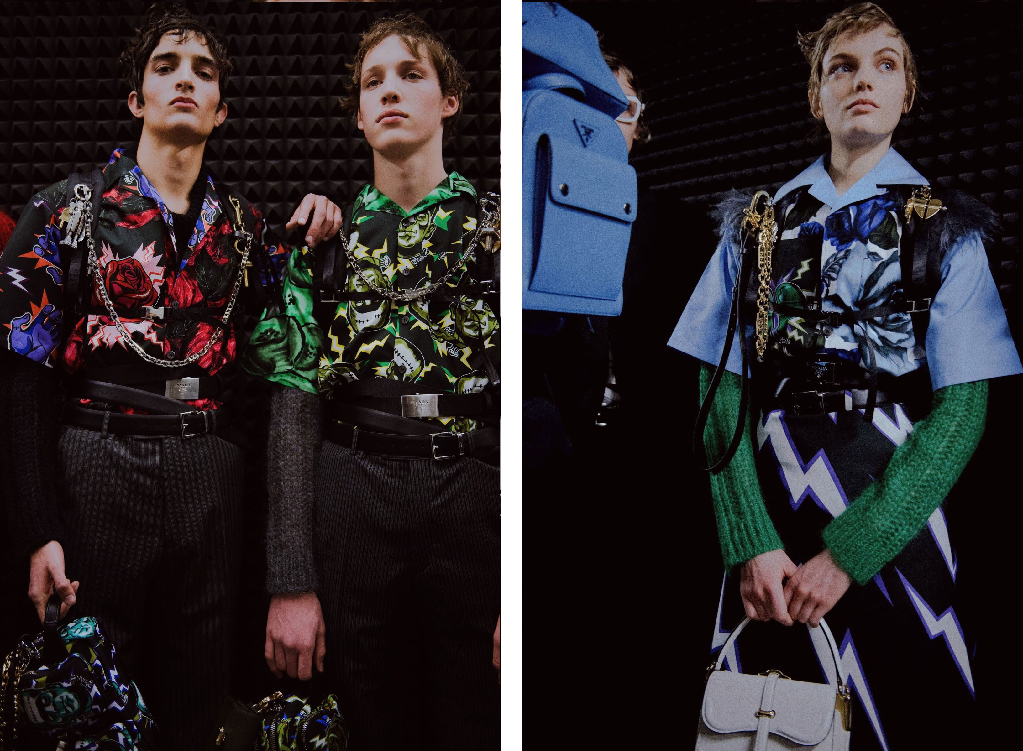 奢侈时装屋 Prada 日前在米兰男士时装周完美展示了 2019 秋冬系列,被称为 “光之领地” 的现场 T 台布置直面表达了品牌在这一季中的复古摩登主题,同时也是承接上一季春夏的文艺和浪漫主义风格。从高冷的暗色系正装与亮色碰撞再到繁复印花工艺,再从绒毛翅膀的帽子与肩膀闯入暗色系工装制服的秩序里,Prada 都很好展现了别致生动的设计手法。而通过混搭、叠穿、不同材质的拼接,以及在工装制服中加入捆绑、皮草等元素,也能看到品牌在系列中注入的用心创意。