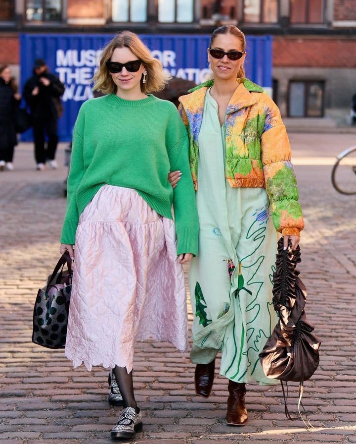 秀场外的时尚潮人们大胆驾驭印花服饰