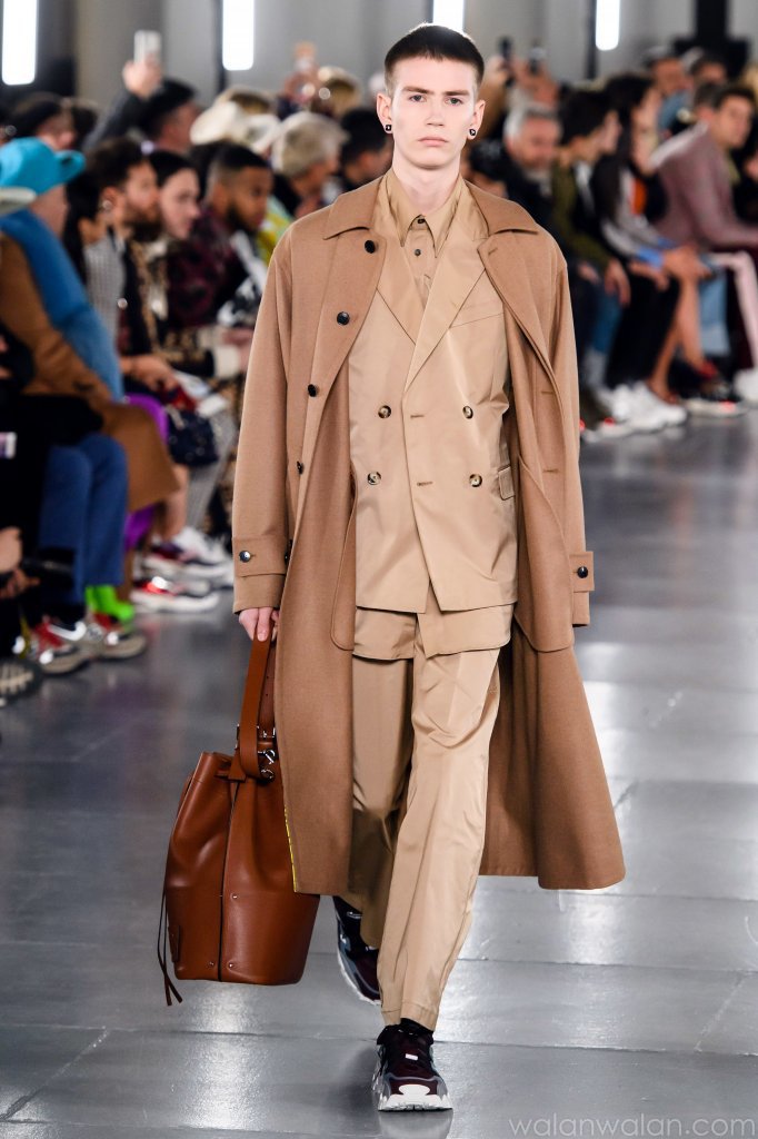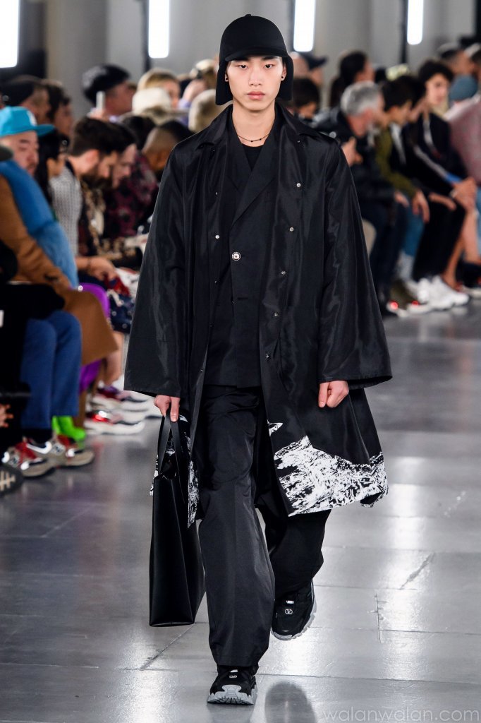 Pierpaolo Piccioli 在Valentino最新秋冬男装阵容里从以往90年代僵硬的美学理念里走出来,转向更现代、更自由、更流畅的设计风格。宽敞舒适的版型与黑色、藏蓝色、橄榄绿和驼色等中性风格调色盘相辅相成,使全系列增添了轻松自在的氛围,无论是针织品、双排扣或羊角扣大衣、长款风衣、运动类服饰,还是剪裁得体的西装都传达了潇洒自信的男子气度。一些人物肖像与宇宙飞船交叉的抽象印花和骷髅头图案为许多优雅休闲的单品注入科幻的、艺术化的多元情调。