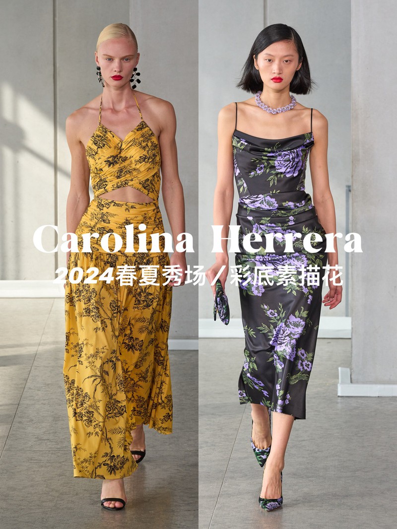 Carolina Herrera 2024春夏让我们看到了流行的黑白花卉在发生转变,加入一些彩色,变得更有活力!