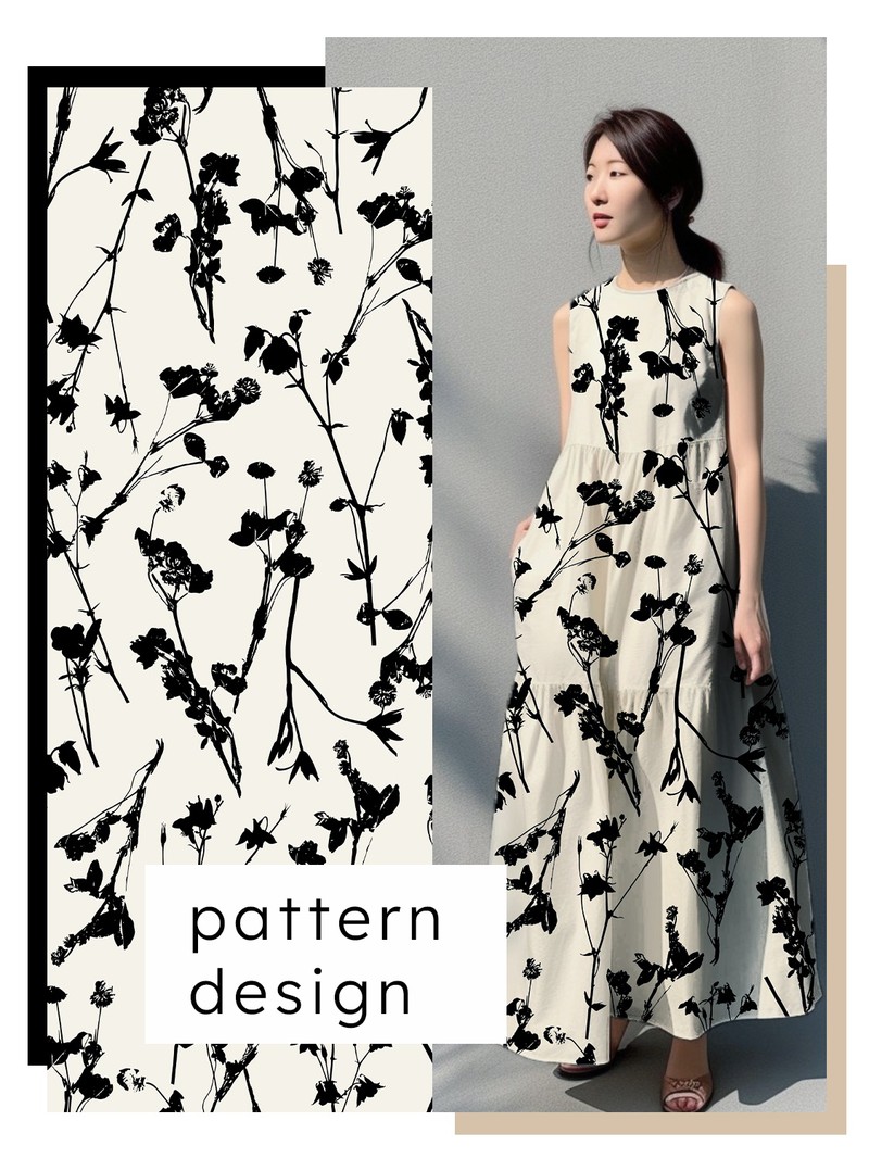 将花卉、植物元素以黑色和白色的方式呈现,具有很高的视觉对比度