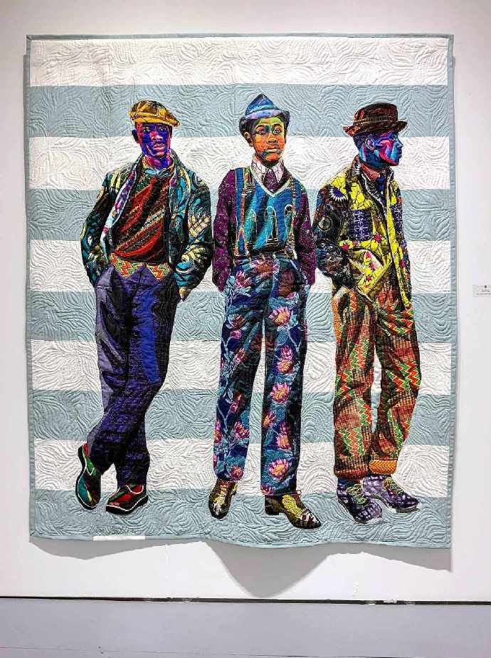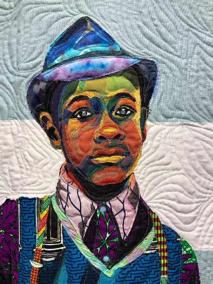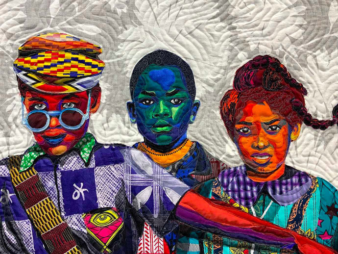 色彩斑斓的被子:使用非洲布料制作细致入微的肖像 美国艺术家 Bisa Butler 从一组充满活力的图案织物中绘制出日常人物的肖像。她不使用具有代表性的颜色,喜欢用层次分明的宝石色调来构成黑色主体的皮肤,经常把人物组合成强烈的轮廓。