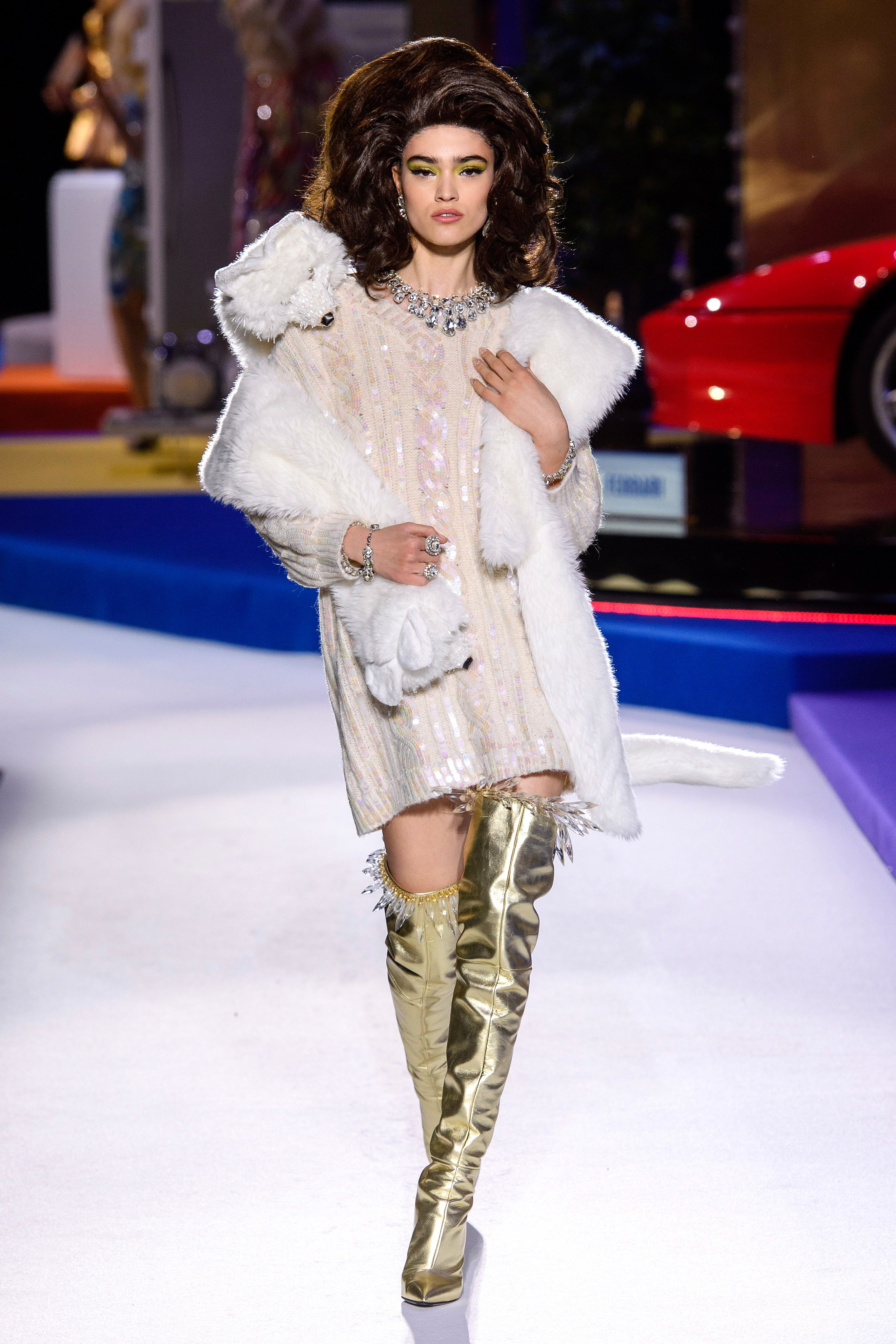 杰里米斯科特称之为纯粹的老式逃避现实。但莫斯奇诺的创意总监从来没有让我们轻易摆脱困境,是吗?事实上,斯科特曾经举办过一场游戏秀时装秀。他2001年秋季系列是他在移居纽约之前在巴黎展出的最后一个系列,涵盖了熟悉的地面,一直到祖父钟,La-Z-Boy躺椅,Hoover真空吸尘器以及带有蓬松假发的模特演示者。“专业术语是戏弄,”他在后台说。“他们正在取笑这些奖品。”Teddy Quinlivan为她出售红色法拉利的方式获得了特别的积分。吃了你的心,范娜怀特。