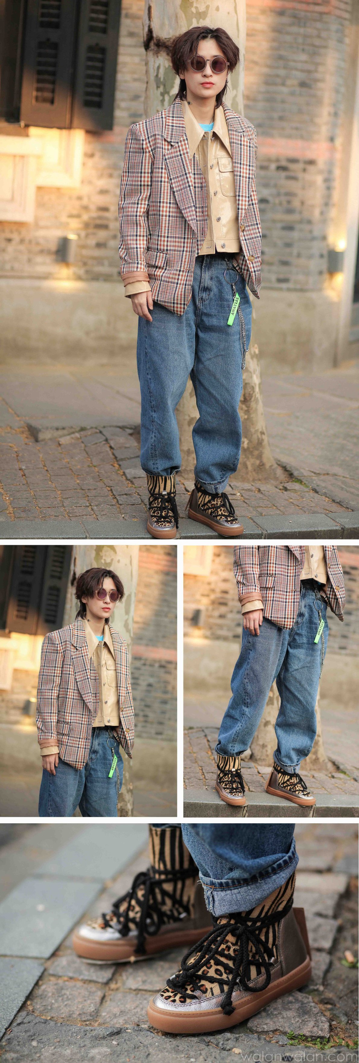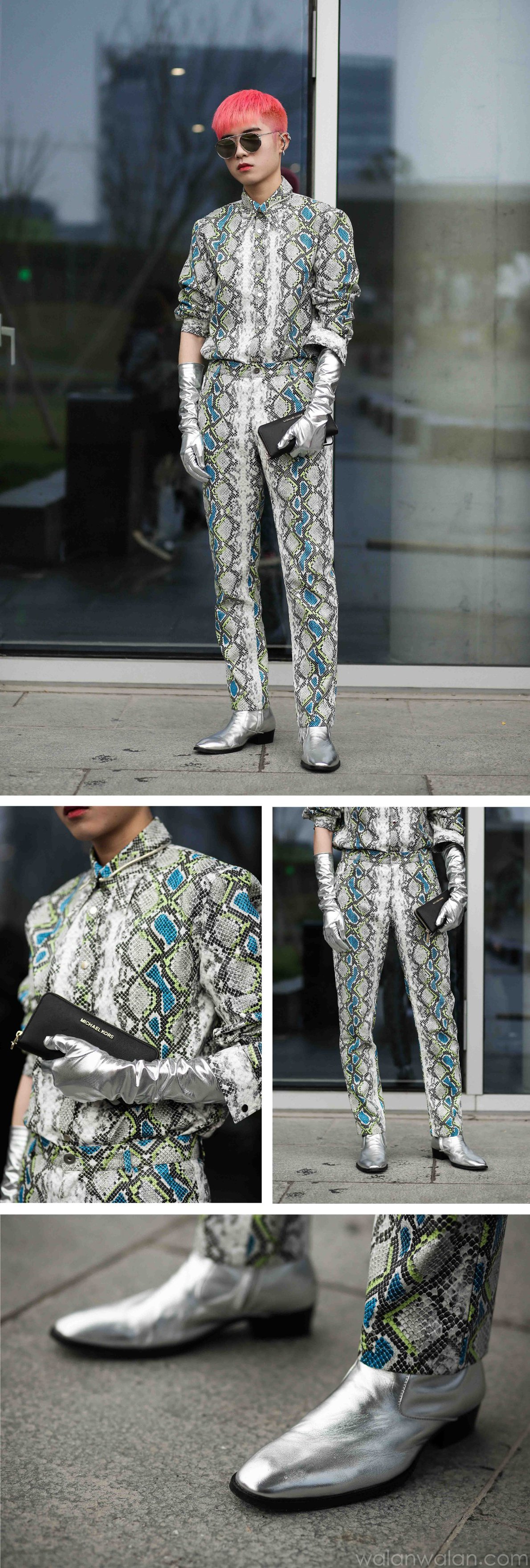 前不久刚刚落幕的上海时装周场外,运动装束与正装的结合成为街拍主流。荧光绿、鲜红色单品,为整体造型带来视觉亮点。大胆的兽皮纹印花和醒目格纹长裤,成为中国街头潮人引人注目的必备单品。