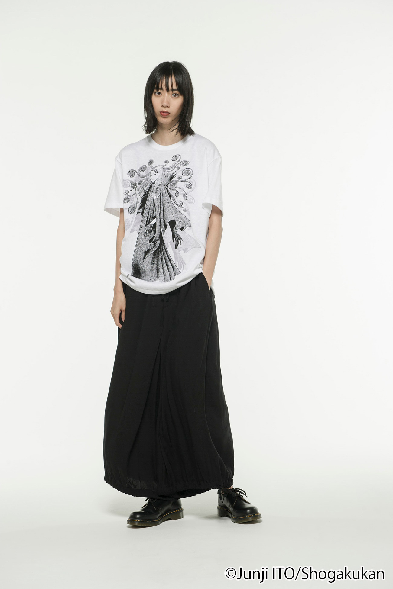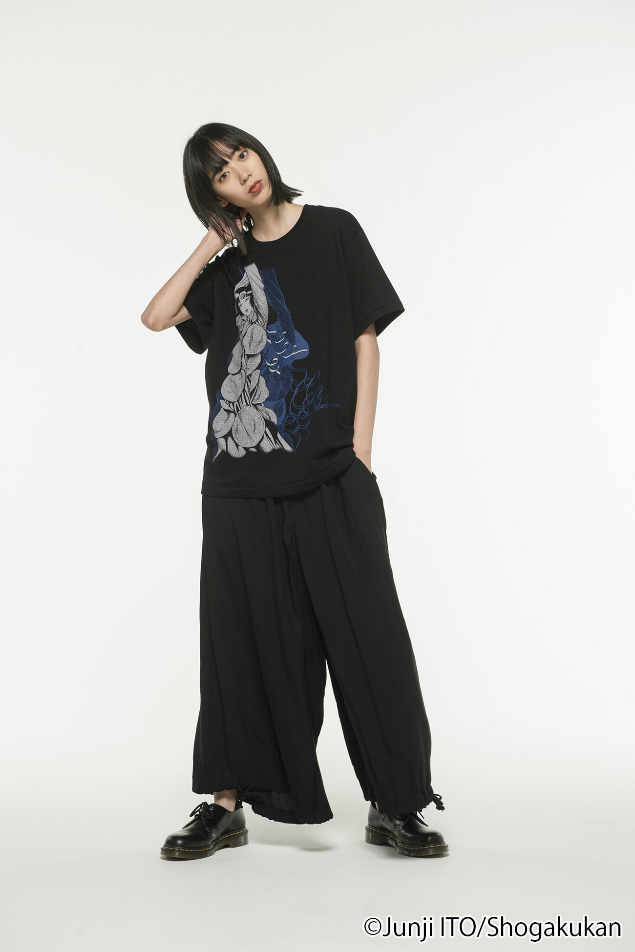 由山本耀司打造的支线品牌 S’yte Yohji Yamamoto 一直致力于为消费者带来平价却独特的休闲服饰设计,也收获了不少粉丝。而近日,品牌联手日本恐怖漫画大师伊藤润二,以其经典漫画《漩涡》为主题打造全新的联乘系列,包含长袖 T 恤,短袖 T 恤及托特包共五件单品,全部以手绘漫画人物图案印花装饰,在衣服的背后则印有 S’yte 的 Logo 图案。