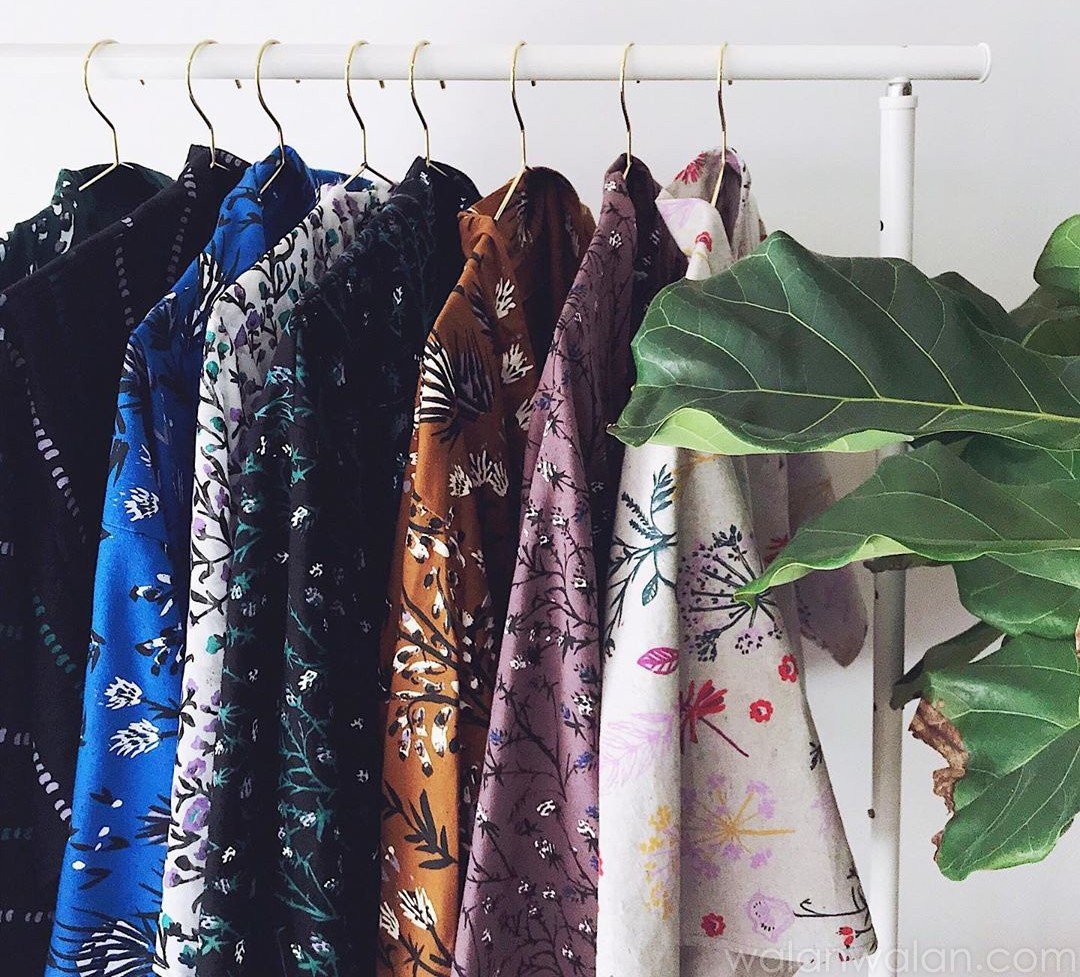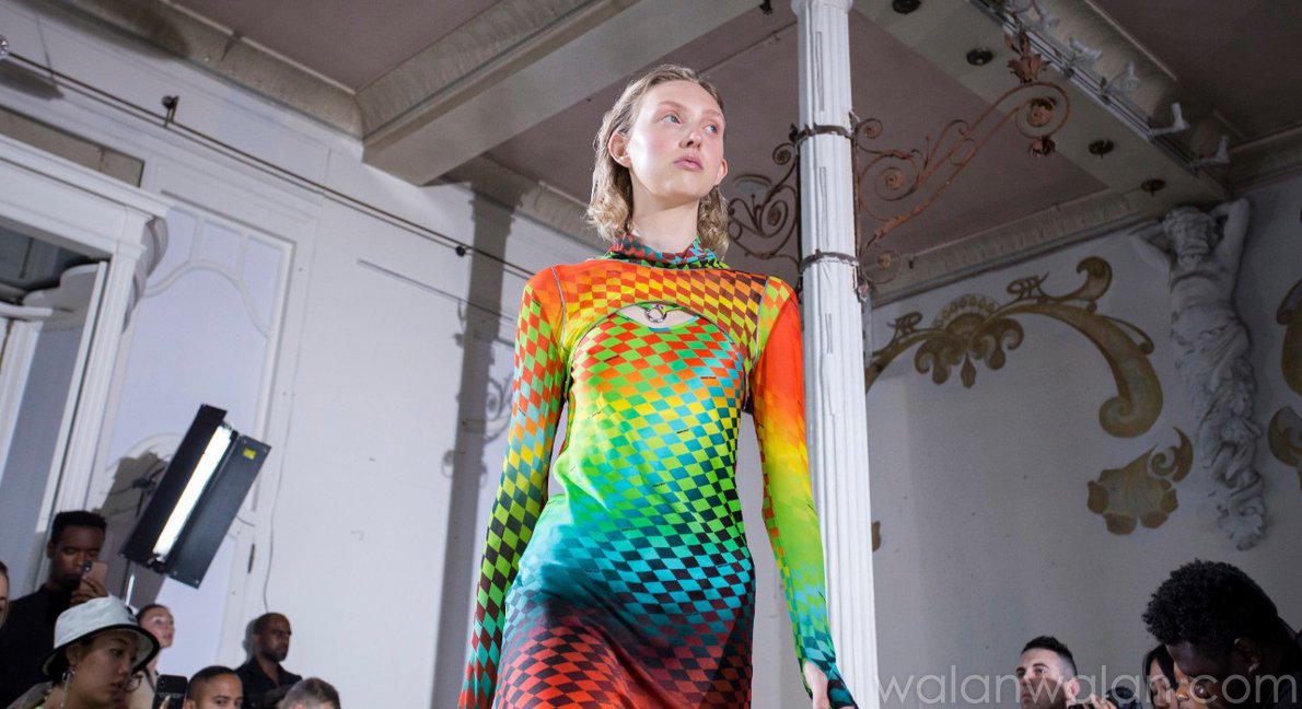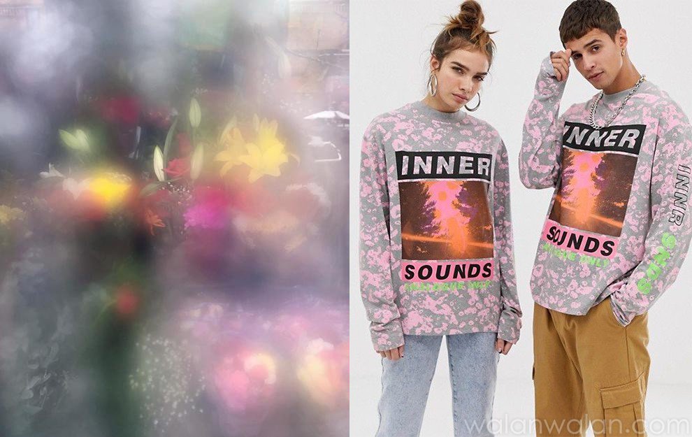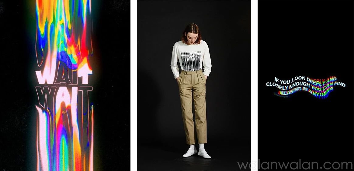 脉冲波纹一般指将几何图案、花卉、人物、风景及艺术作品进行扭曲变形,形成动态视觉效果的图案。此类印花可以作为单独印花,局部用于卫衣、夹克和裙装单品;或参考Cedric Charlier和Poustovit,打造全身印花造型。
