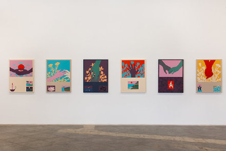 洛杉矶艺术家 Greg Ito 迷人的作品以一种平面的图形风格出现,通常通过漫画书风格的画板在画布上描绘,粉红色、紫色和蓝色主导了他的视觉语言。“我喜欢物体和图像之间的对话,它们如何在一个房间里相互交谈,并相互传达信息。”
