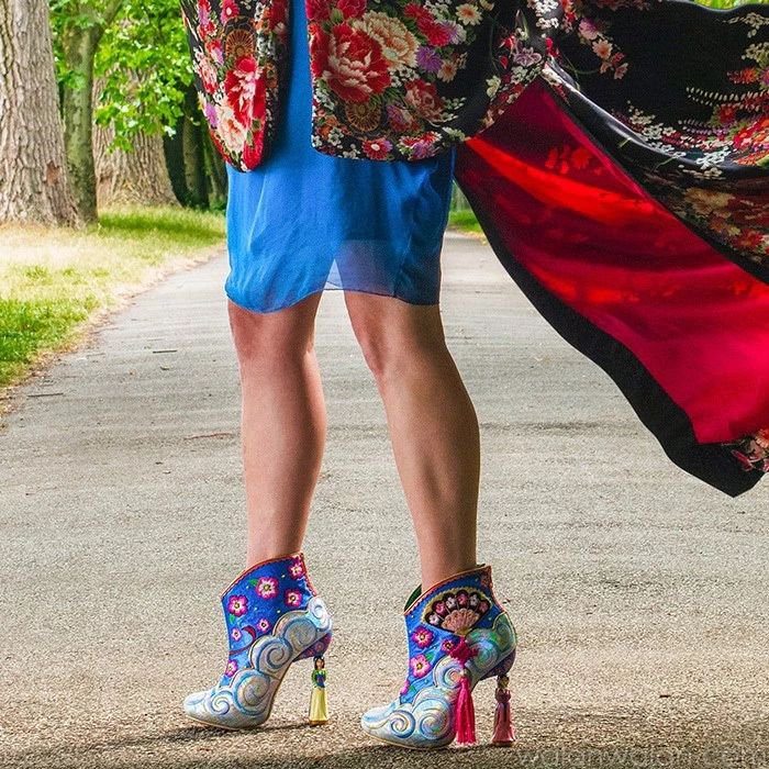 官方解读:你不是每个朝代都能遇到花木兰这样的女孩!我们很荣幸为您带来这双高跟人物靴,有两个多变的木兰公主造型——旋转鞋跟,选择您最喜欢的款式!上层装饰着彩虹般的漩涡云,并绣有图案,一只靴子上是木须,另一只靴子上是一把流苏扇子,扇子上有微小的花朵图案,扇子顶部是点缀着樱花的宝蓝色鞋面。