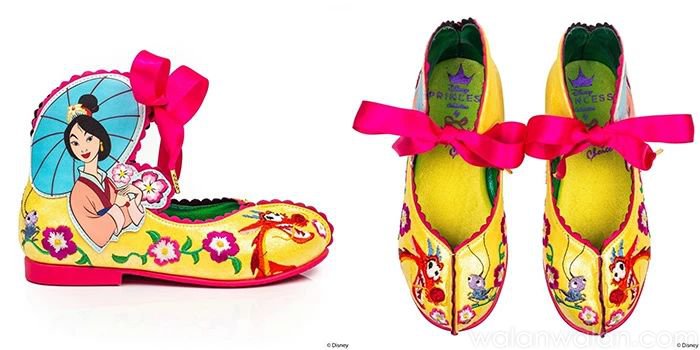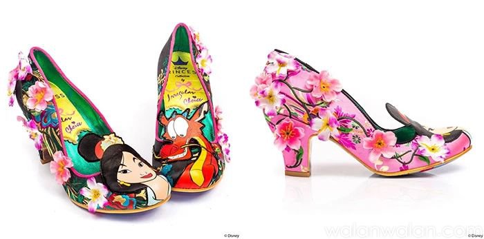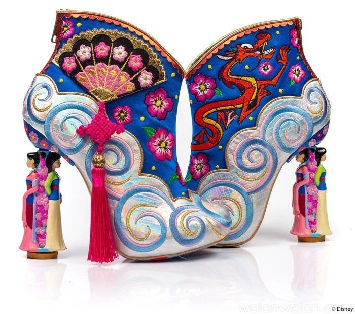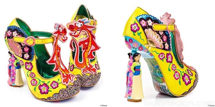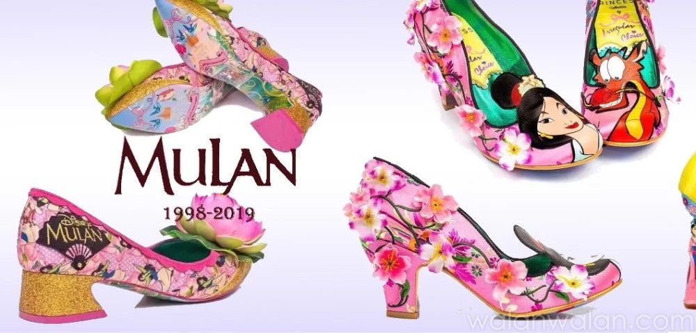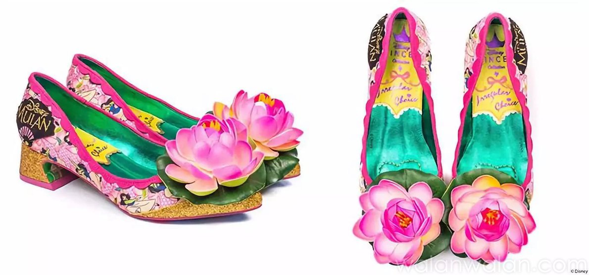 官方解读:“那个盯着我看的女孩是谁?”——让你真实的自我在这双木兰角色高跟鞋中闪耀。拥有两个木兰公主造型-你可以旋转鞋跟选择你最喜欢的款式!黄色丝滑的鞋面装饰有小的刺绣樱花和风扇贴花的细节,有T型扣件和心形扣件,此款系带木须贴花装饰。