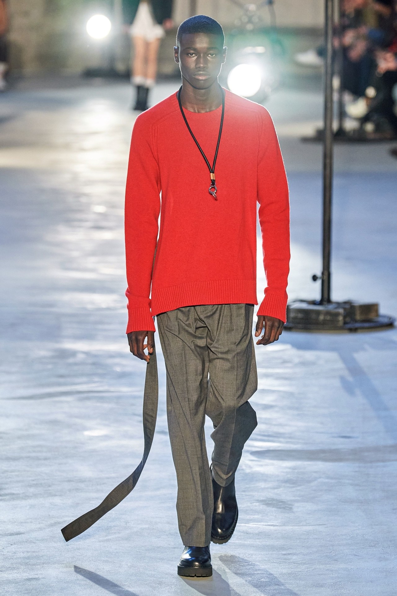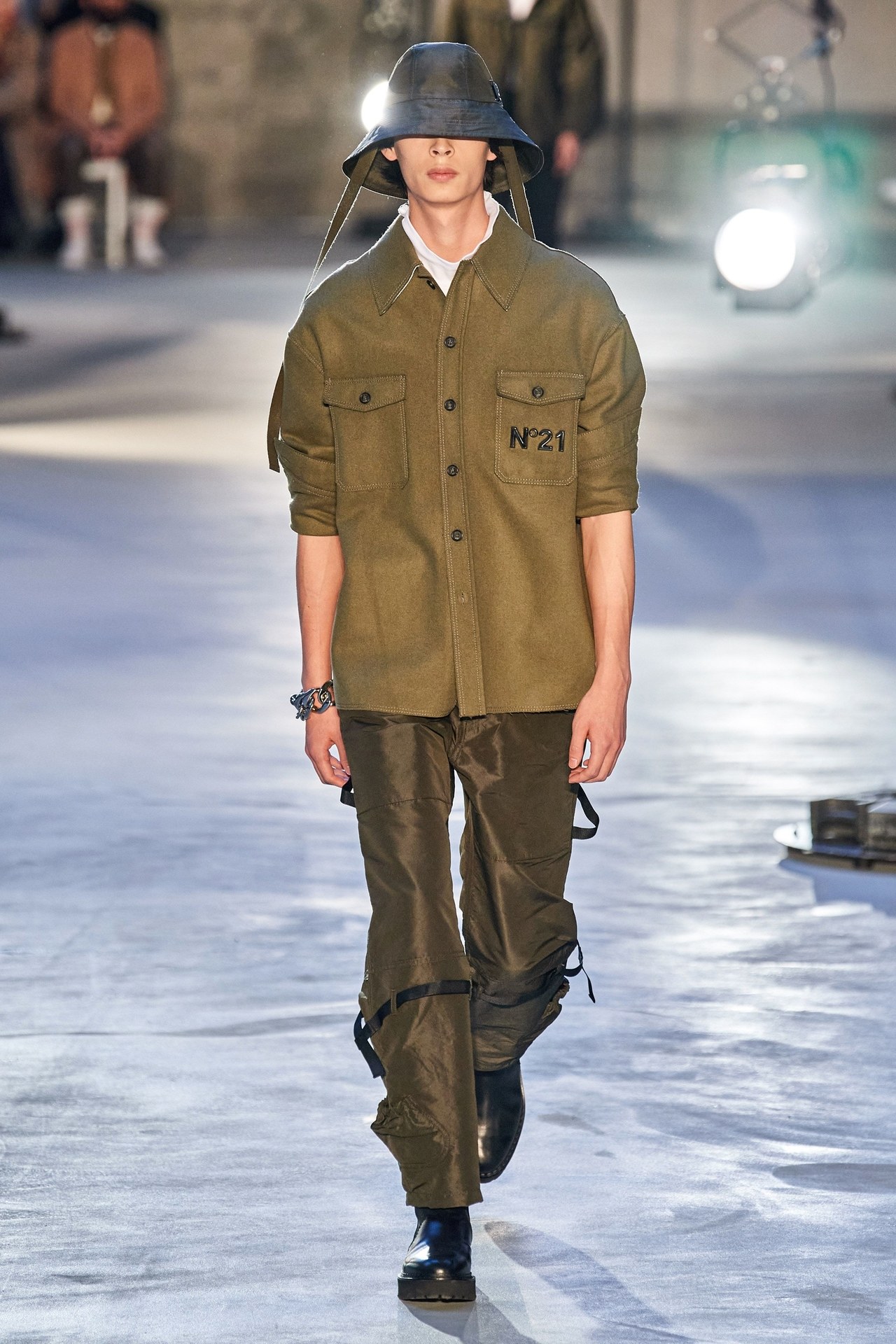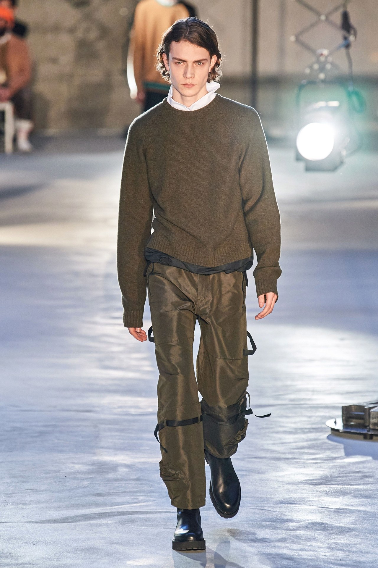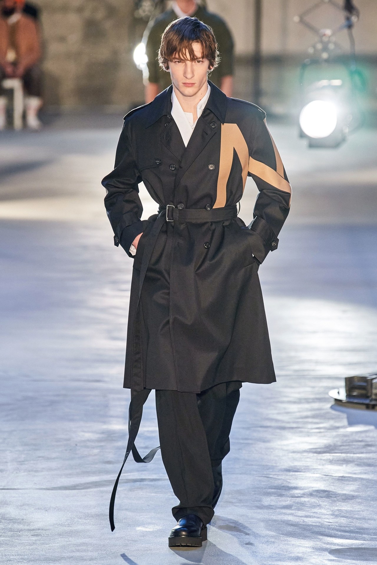 如今,每位男装设计师都在思考解决正装问题的新方法。Dell'Acqua的方法是为经典的衣柜订书钉赋予柔顺的边缘,以几乎女性化,柔和的氛围柔化西装外套,汽车外套和技术外套的阳刚姿态。一个很好的例子是穿着透明蕾丝T恤衫,松紧的grisaille裤子或在搭配宽领夹克的优雅西装下穿。正如设计师指出的那样,通过使用男装中不常见的珍贵面料减轻了厚实的派克大衣和轰炸机的实用运动风,例如松脆的迷彩式罗缎中式衬衫,“通常可以修饰女性的高级定制调料”。它做出了柔和而有说服力的规则转换手势。