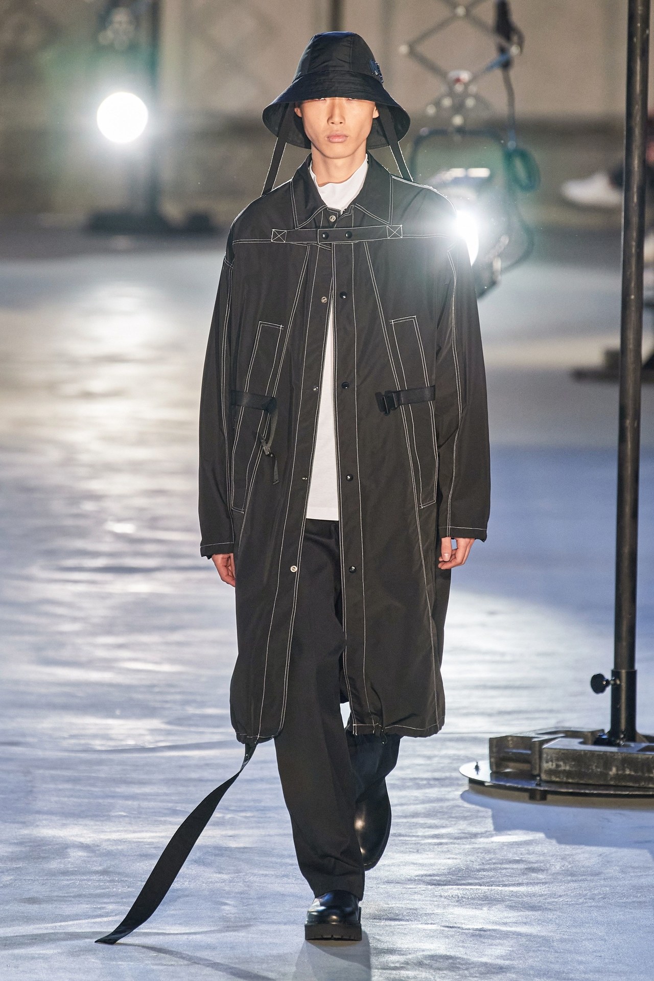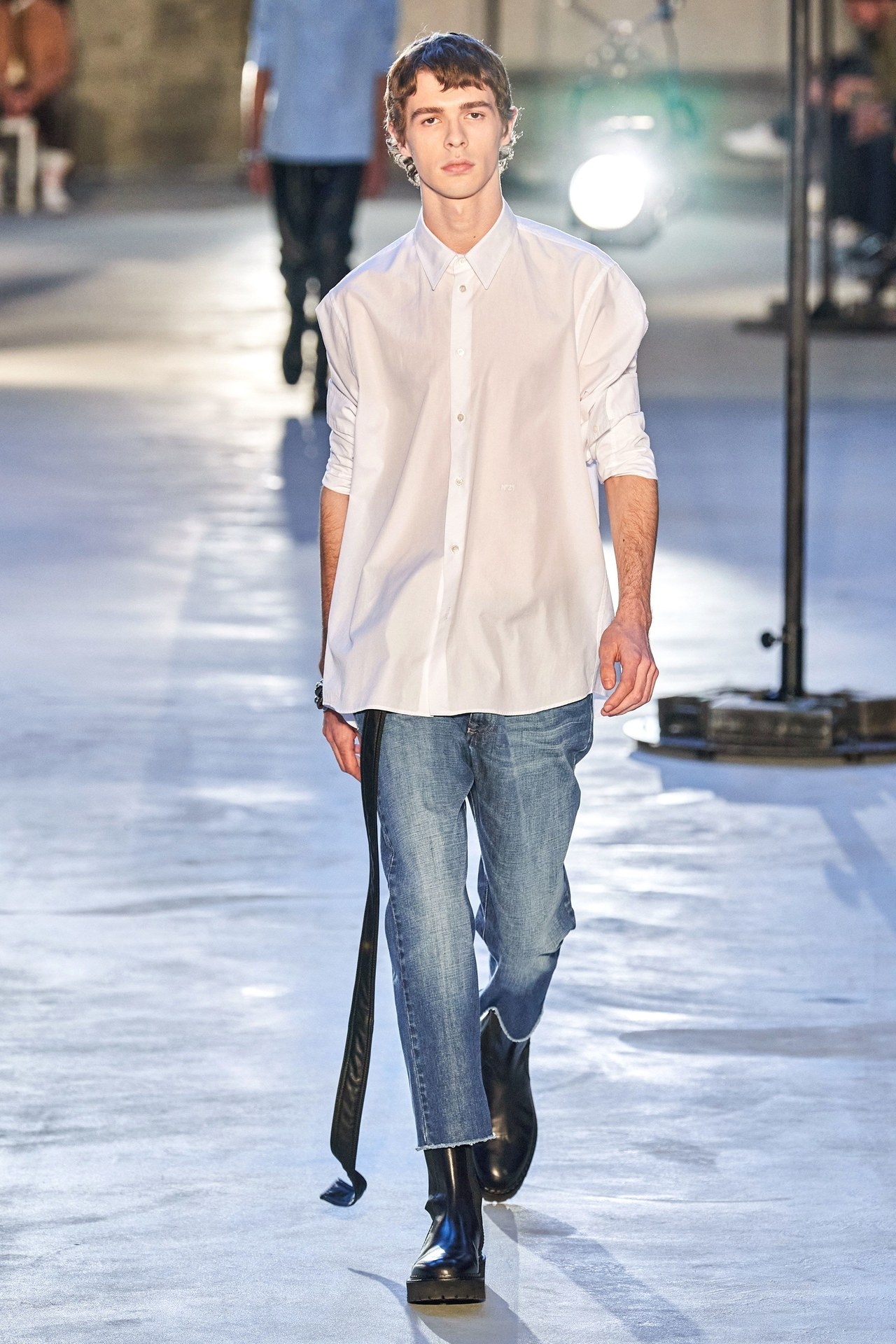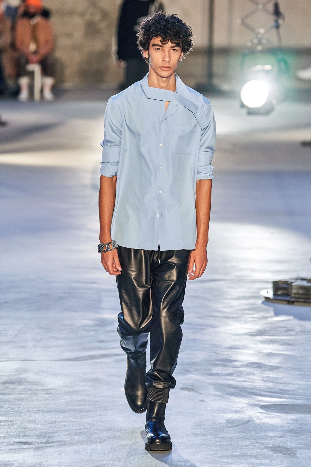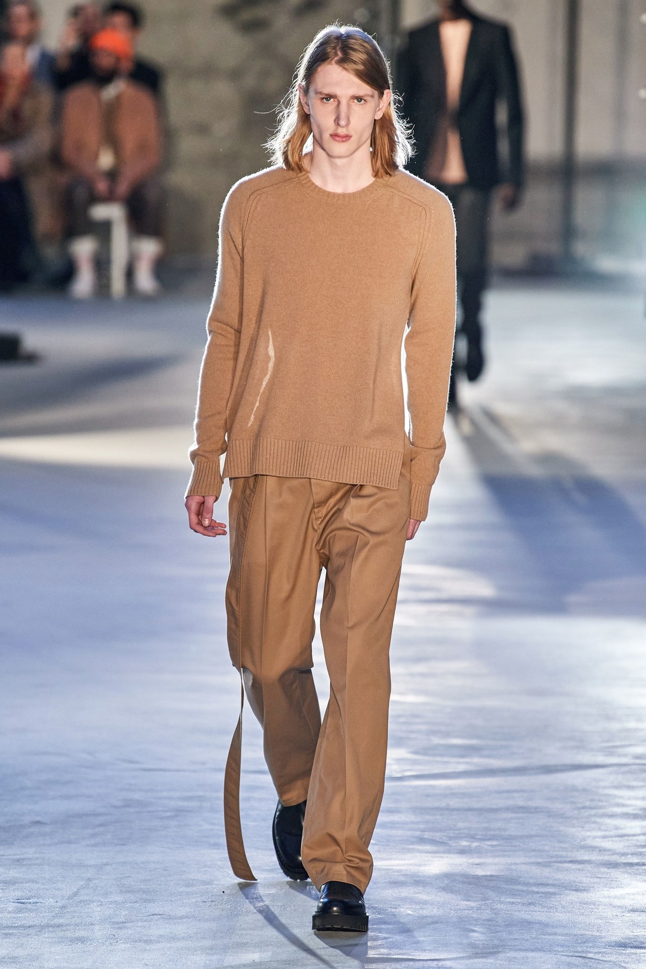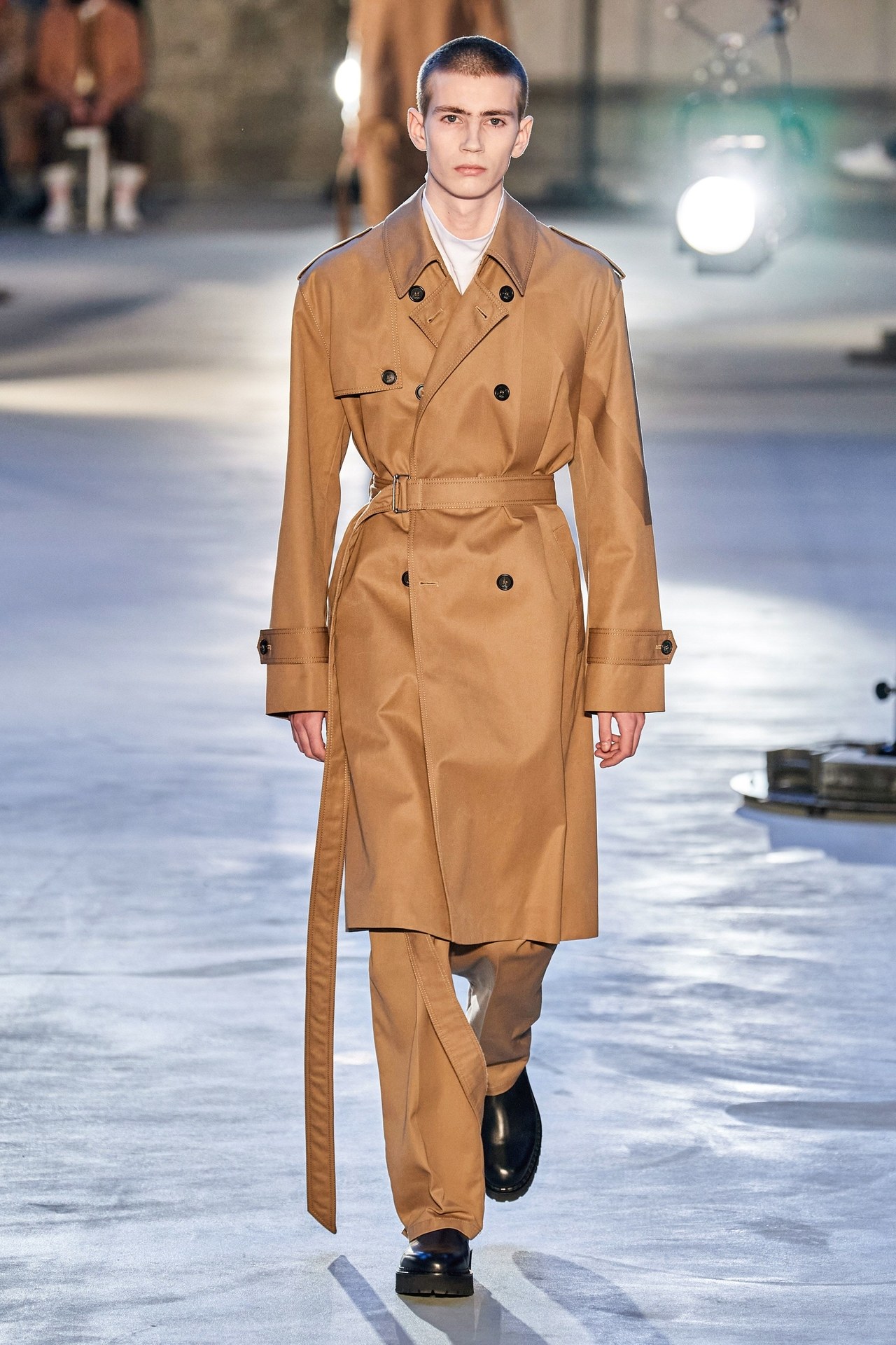 如今,每位男装设计师都在思考解决正装问题的新方法。Dell'Acqua的方法是为经典的衣柜订书钉赋予柔顺的边缘,以几乎女性化,柔和的氛围柔化西装外套,汽车外套和技术外套的阳刚姿态。一个很好的例子是穿着透明蕾丝T恤衫,松紧的grisaille裤子或在搭配宽领夹克的优雅西装下穿。正如设计师指出的那样,通过使用男装中不常见的珍贵面料减轻了厚实的派克大衣和轰炸机的实用运动风,例如松脆的迷彩式罗缎中式衬衫,“通常可以修饰女性的高级定制调料”。它做出了柔和而有说服力的规则转换手势。