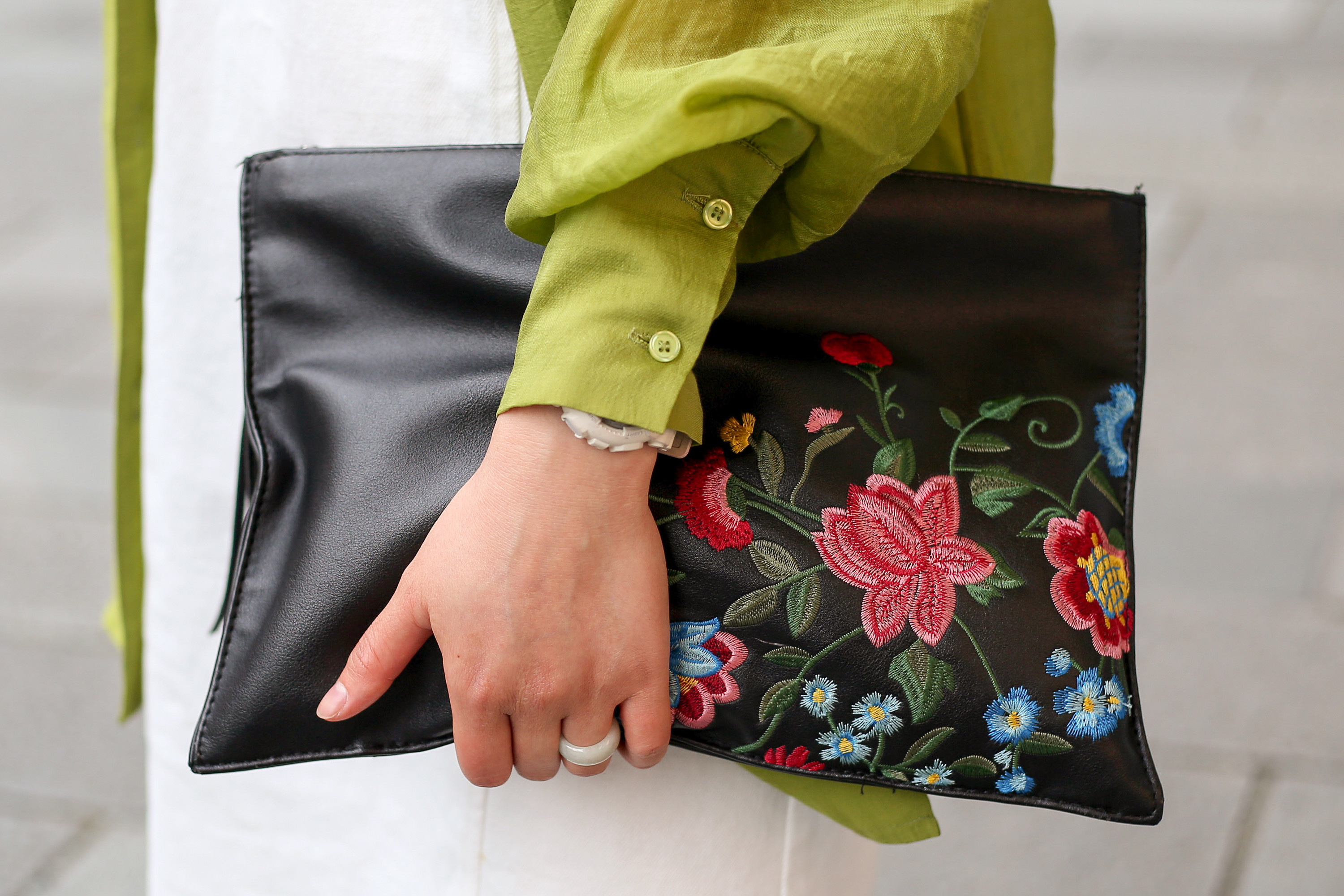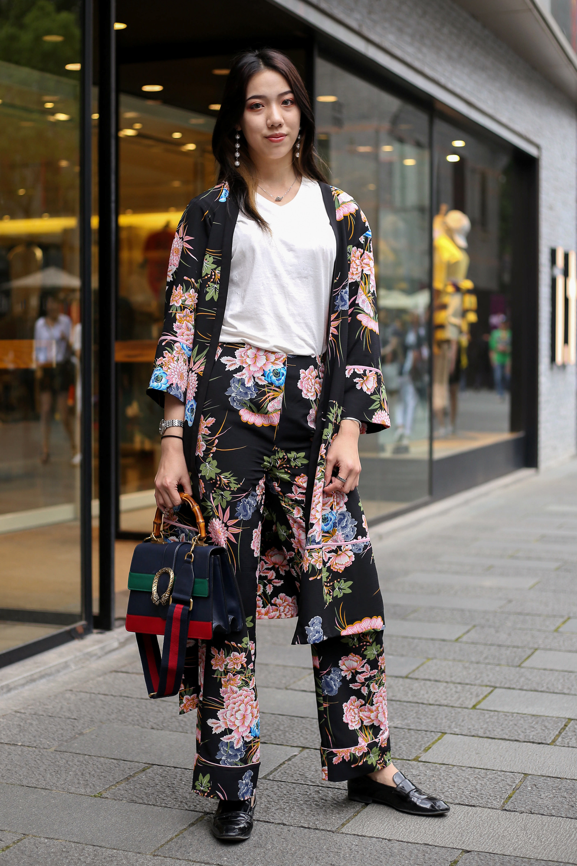 除了简约叛逆风格出现在6月的上海街头。国画花卉,抽象图案,报纸印花同样打造着随意时尚的别样风格。