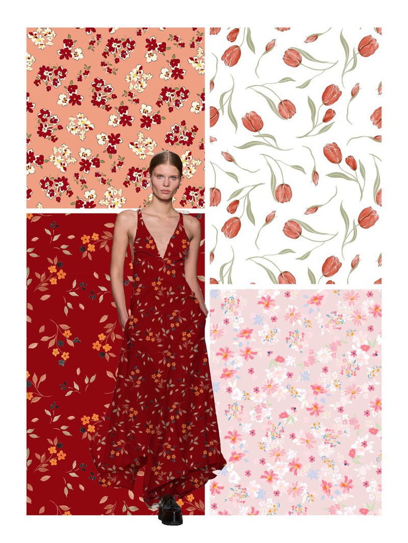 复古红,碎花系列