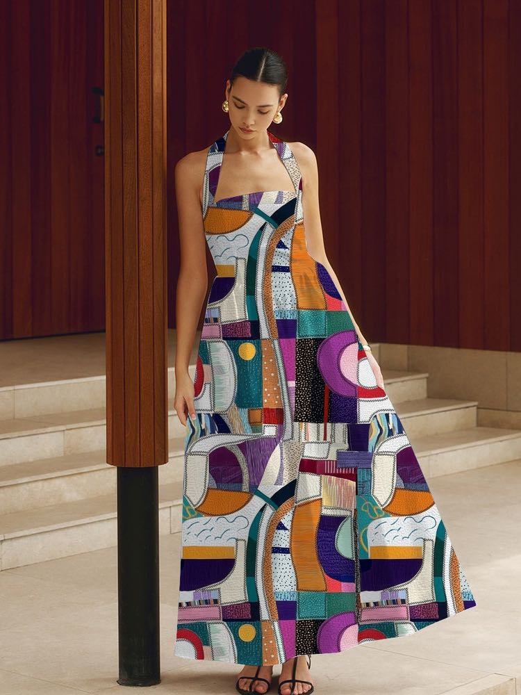 蓝紫色系拼接印花,民族风的魅力