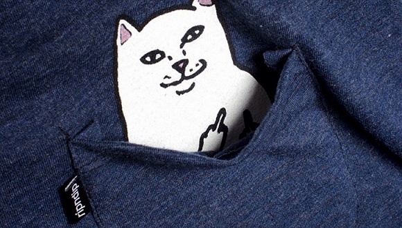 RIPNDIP是来自美国的魔性潮牌,品牌标志是大家熟悉的竖着中指的白色猫咪,名叫Lord Nermal。中指猫所表达的生活态度潇洒