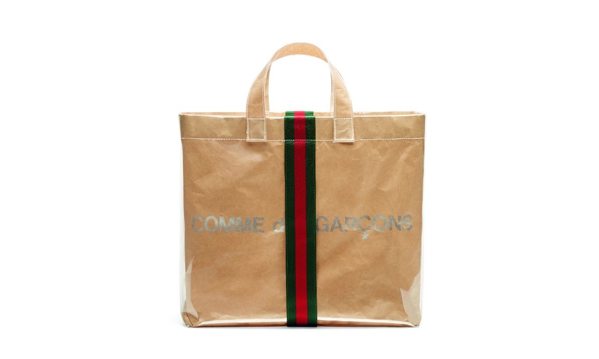 GUCCI 和 Comme des Garçons 的结合还是会让人忍不住驻足。此番 双方携手带来 PVC 牛皮纸