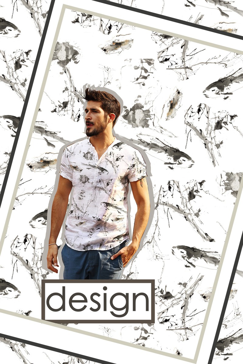 手绘水墨画的清爽华亿平台搭配麻料短袖夏日炎炎男士首选服装面料