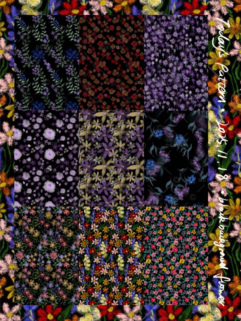 -黑底花卉--黑底,花卉,碎花,朦胧,水彩,油画,笔触,肌理-