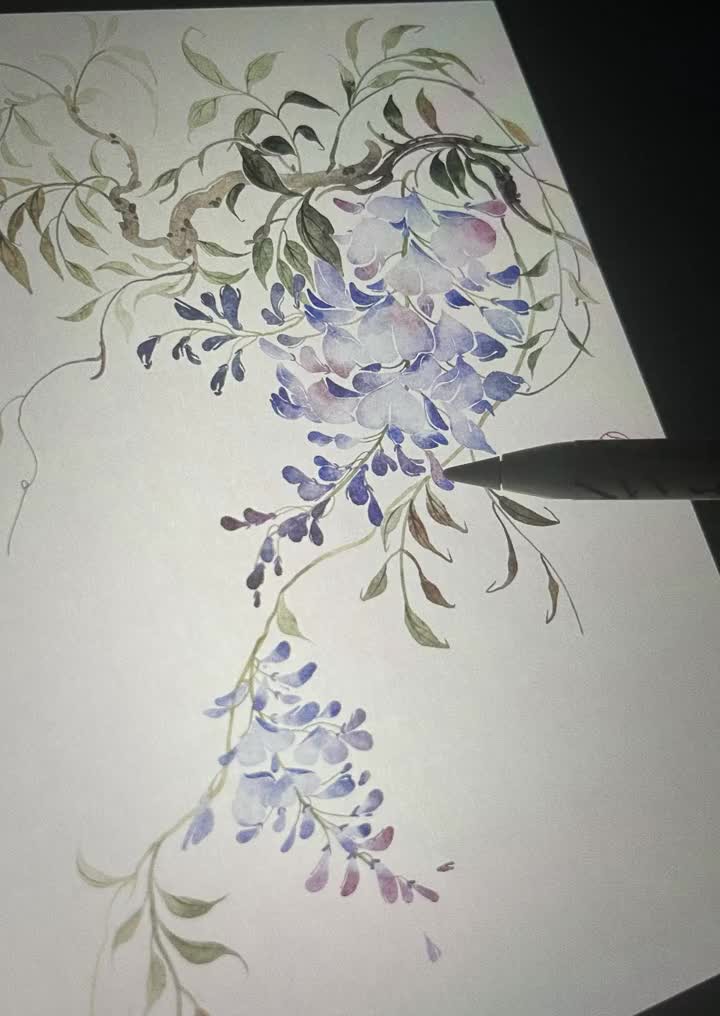 Ipad仿国画 | 紫藤绘画过程#procreate绘画   视频来源:吴蛋蛋是画画的