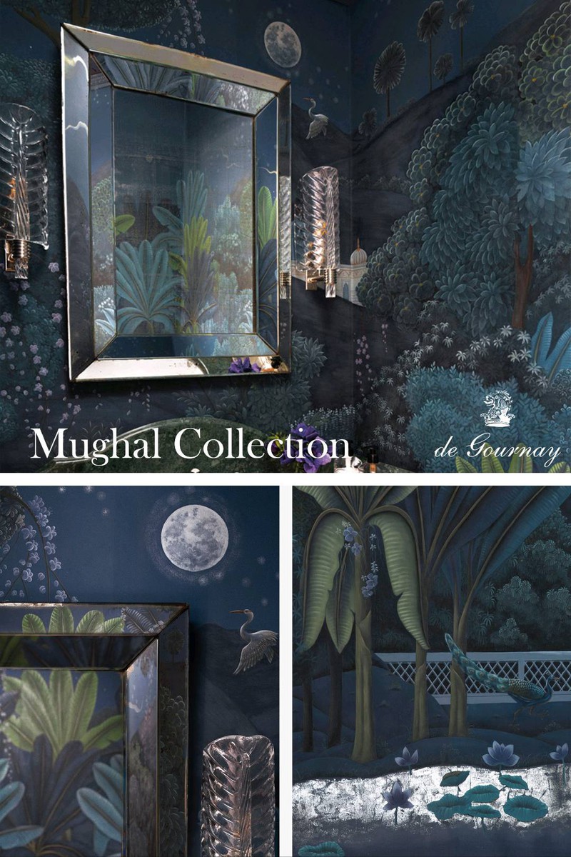 de Gournay 壁纸欣赏 - Mughal Collection该系列由手绘壁纸、手工刺绣墙纸和织物组成,呈现出生动的场景和