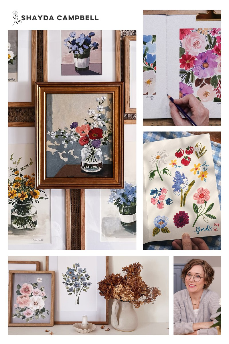 Shayda Campbell的作品常常展现出细腻的花卉图案,她的创作过程和成品在社交媒体上广受欢迎。她的作品不仅具有艺术价值,还