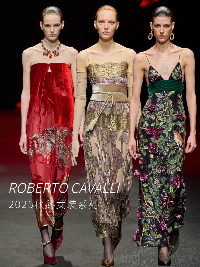 2025秋冬女装 |Roberto Cavalli 丝绒红 热情火焰 动物纹