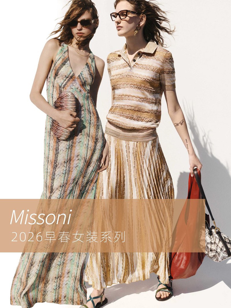 看秀场图案|Missoni 2026早春精致条纹几何图案Missoni品牌中图案的韵律交织以及活泼的色彩搭配并非是固定不变的,具有