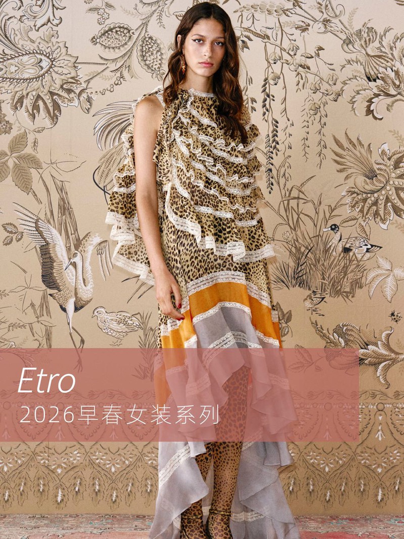 看秀场图案|Etro 2026早春的波西米亚精神Marco de Vincenzo一直对装饰艺术有着独特的天赋,他对极度张扬的视觉
